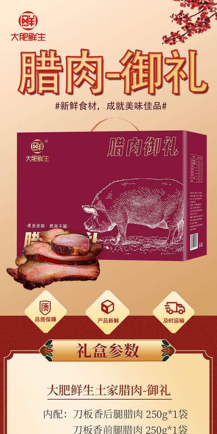 商品名称:大肥鲜生腊肉礼盒-御礼2250g【顺丰/京东快递】