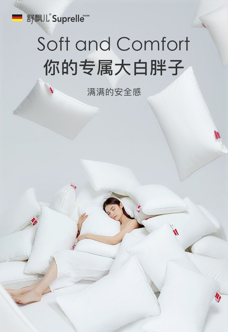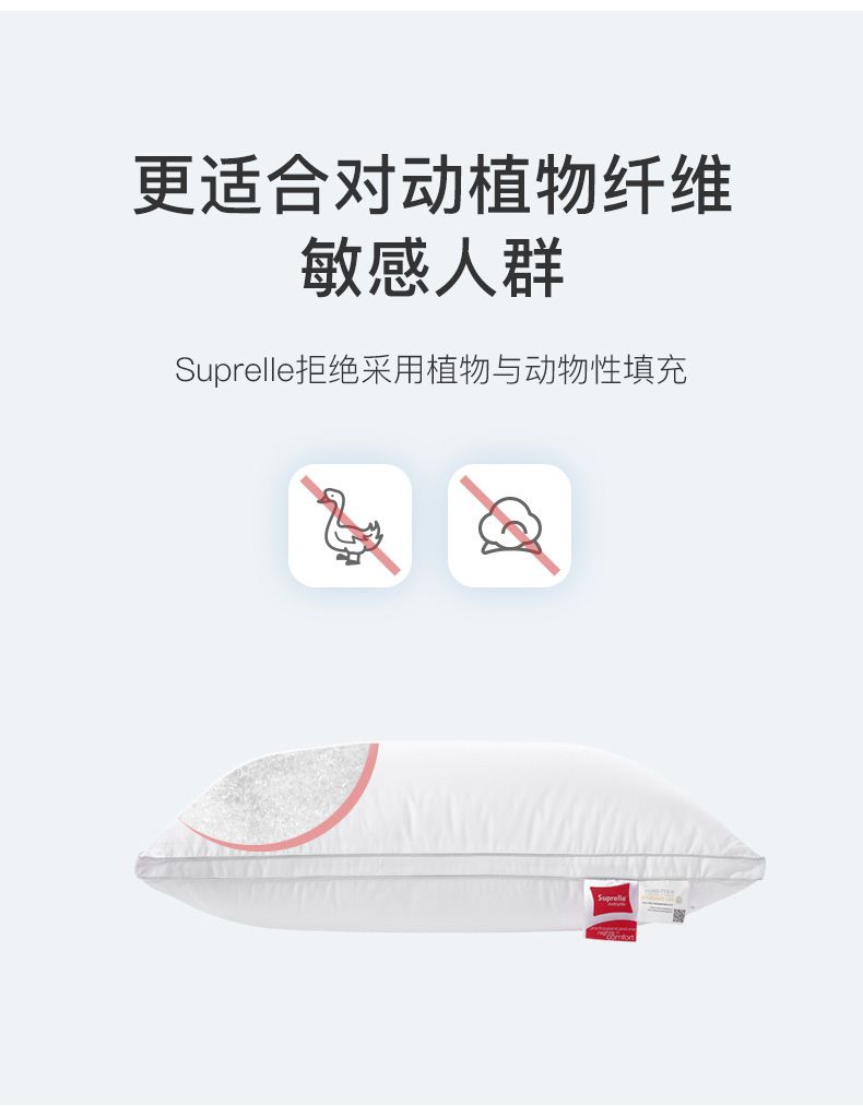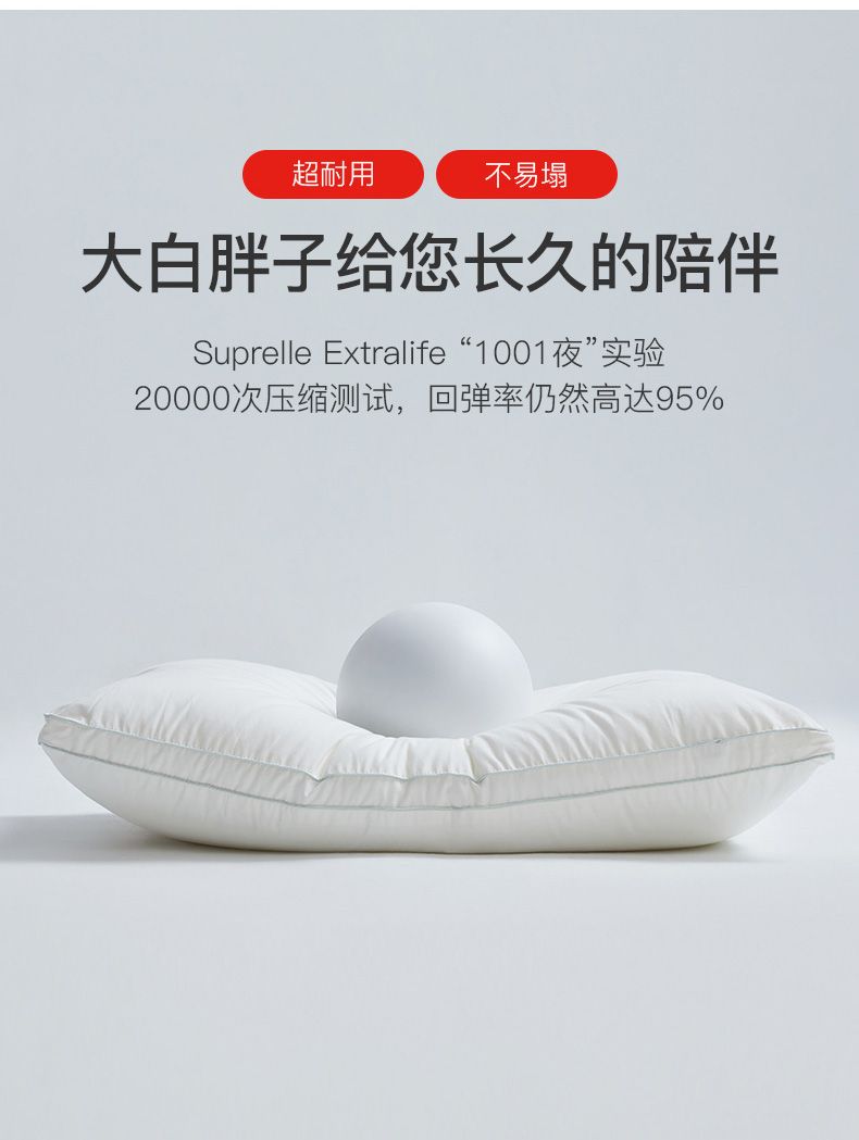 舒飘儿德国进口高弹枕头芯单人家用纯棉可水洗酒店枕护颈助睡眠48*74cm