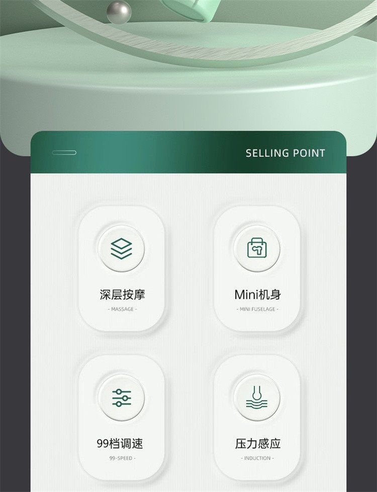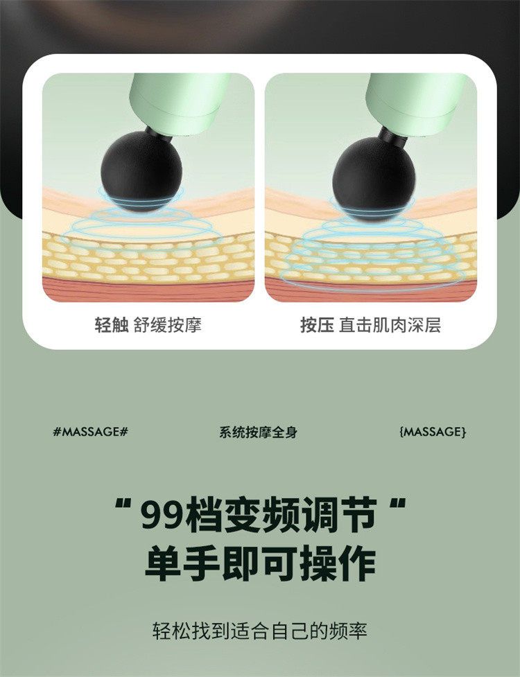 绿色【99档调节+液晶显示+8大按摩头+迷你机身+超长续航】