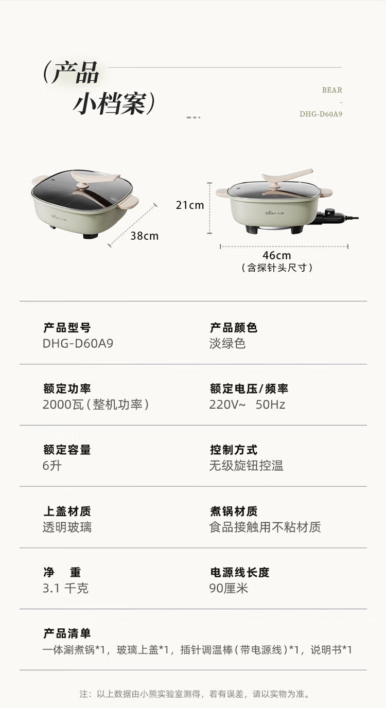 商品名称:小熊 鸳鸯锅DHG-D60A9 电火锅6L大容量多用途锅多功能锅