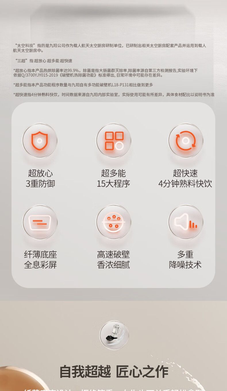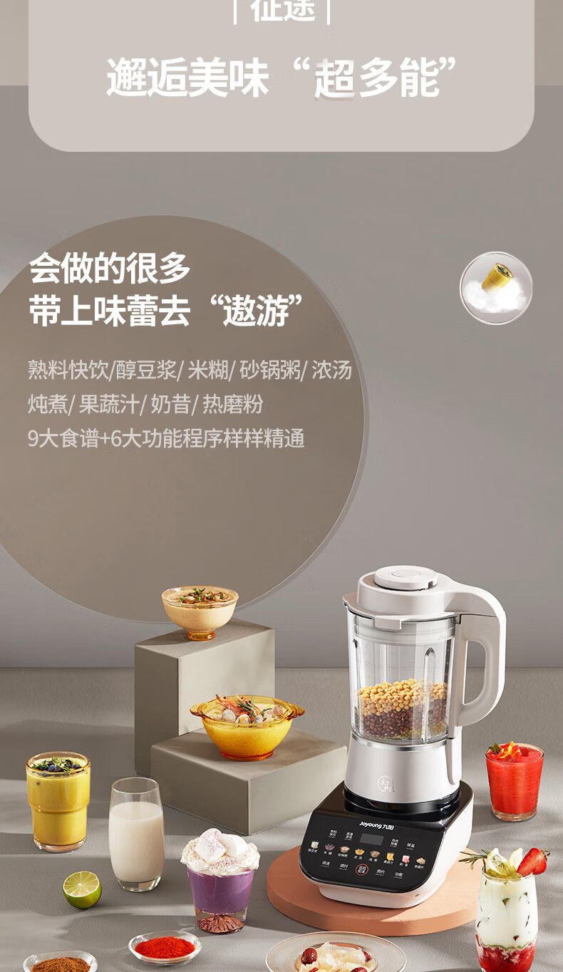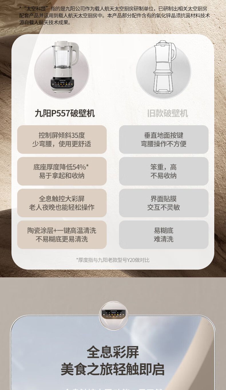 商品名称:九阳破壁机L18-P557 家用豆浆机智能预约加热高速破壁料理机多功能果汁绞肉辅食机降噪薄底座