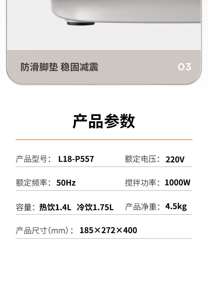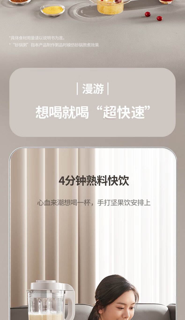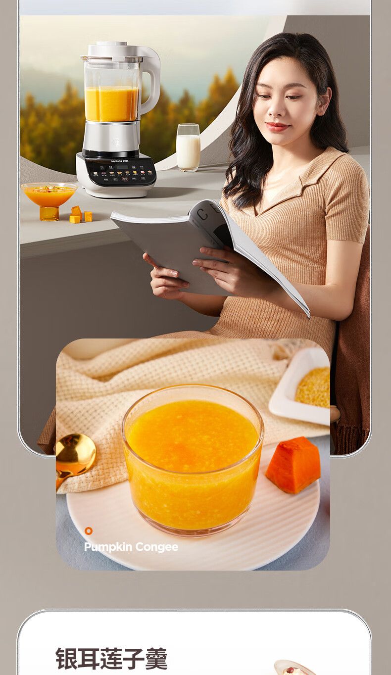 商品名称:九阳破壁机L18-P557 家用豆浆机智能预约加热高速破壁料理机多功能果汁绞肉辅食机降噪薄底座