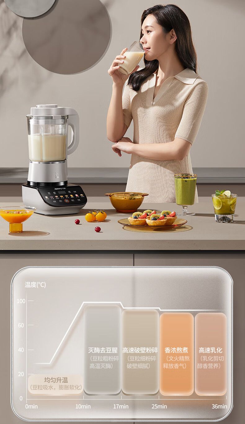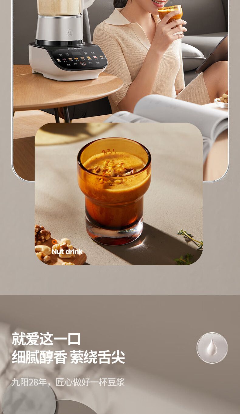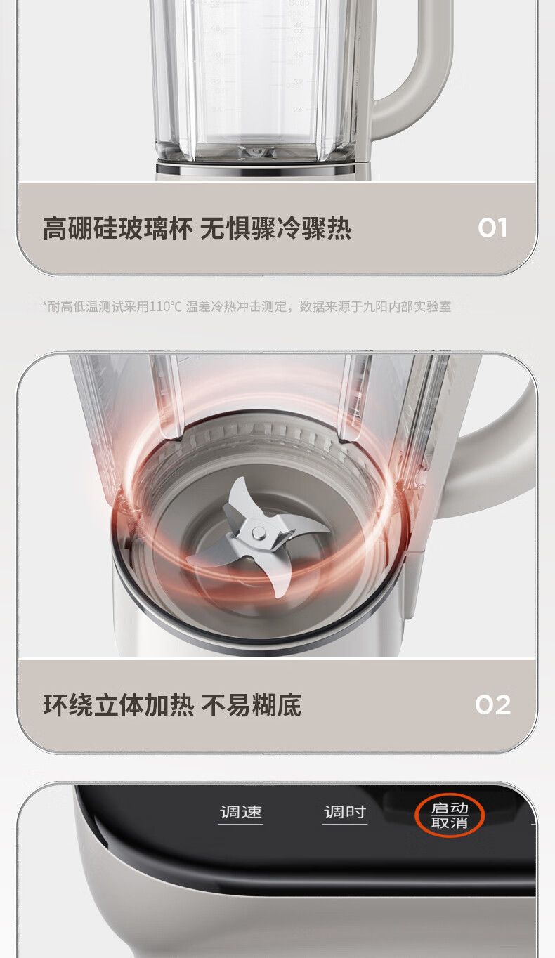 九阳破壁机L18-P557 家用豆浆机智能预约加热高速破壁料理机多功能果汁绞肉辅食机降噪薄底座