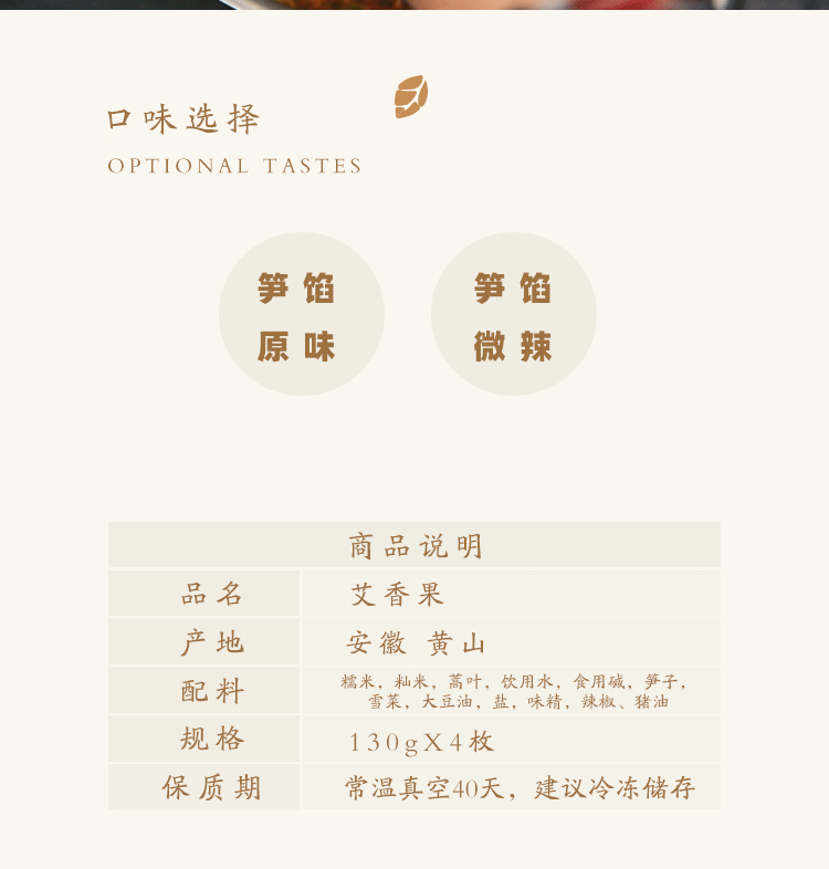 商品名称:【时令限定】浔隐山徽州笋子雪菜艾香果130g*4/袋(4枚) 口味可选
