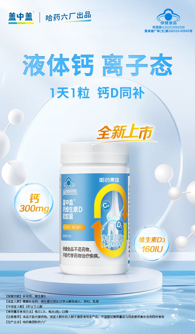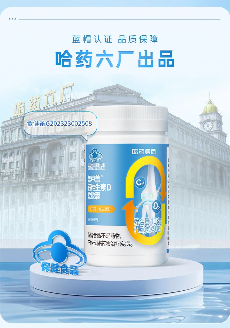 哈药盖中盖 钙维生素D软胶囊 中老年青少年儿童学生补钙 2瓶