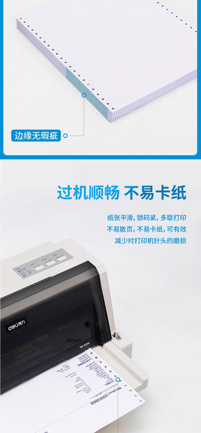 得力 塞纳河N241-5电脑打印纸(1/2CS彩色撕边)(1000页/盒)*1盒