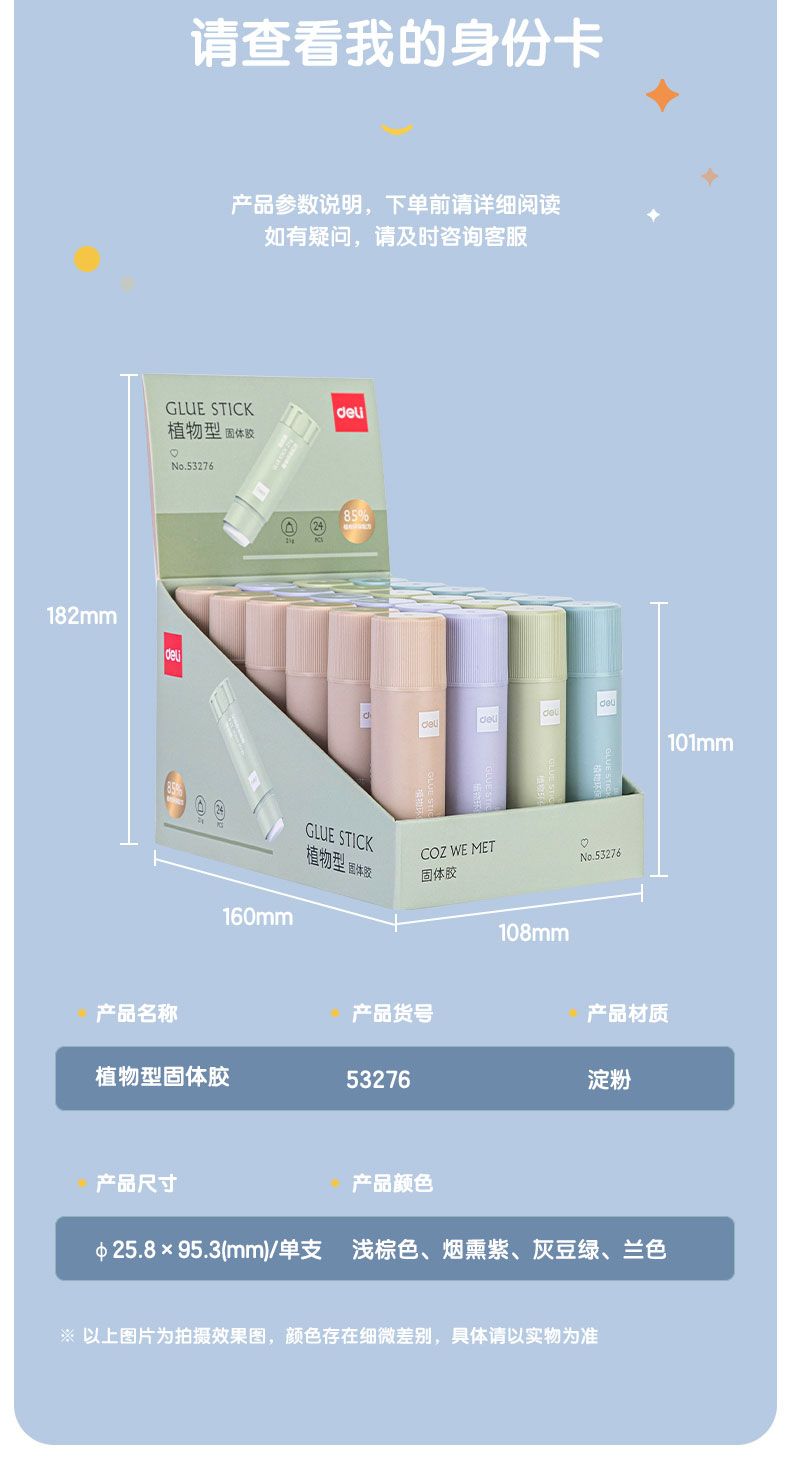 商品名称:得力 53276因为遇见你植物固体胶(白色)(21g/支)*24支