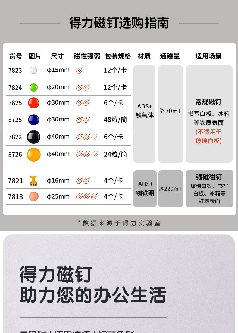 商品名称:得力 7822磁钉Ф40mm(混合装)(6个/卡)*8卡