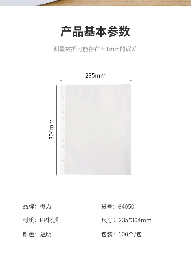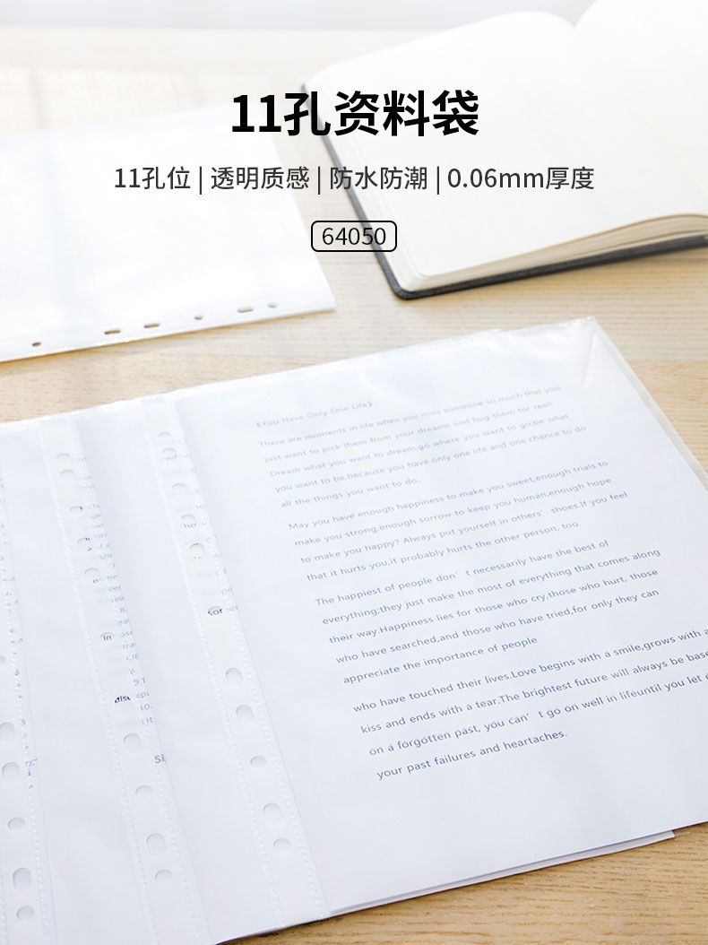 商品名称:得力 64050_11孔资料袋(透明)(100个/包)*2包