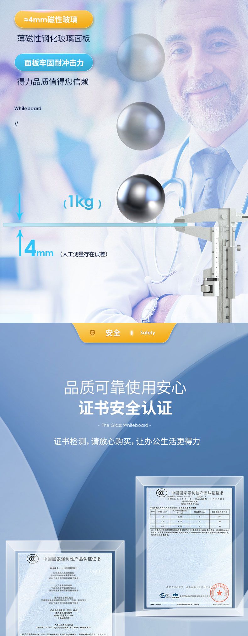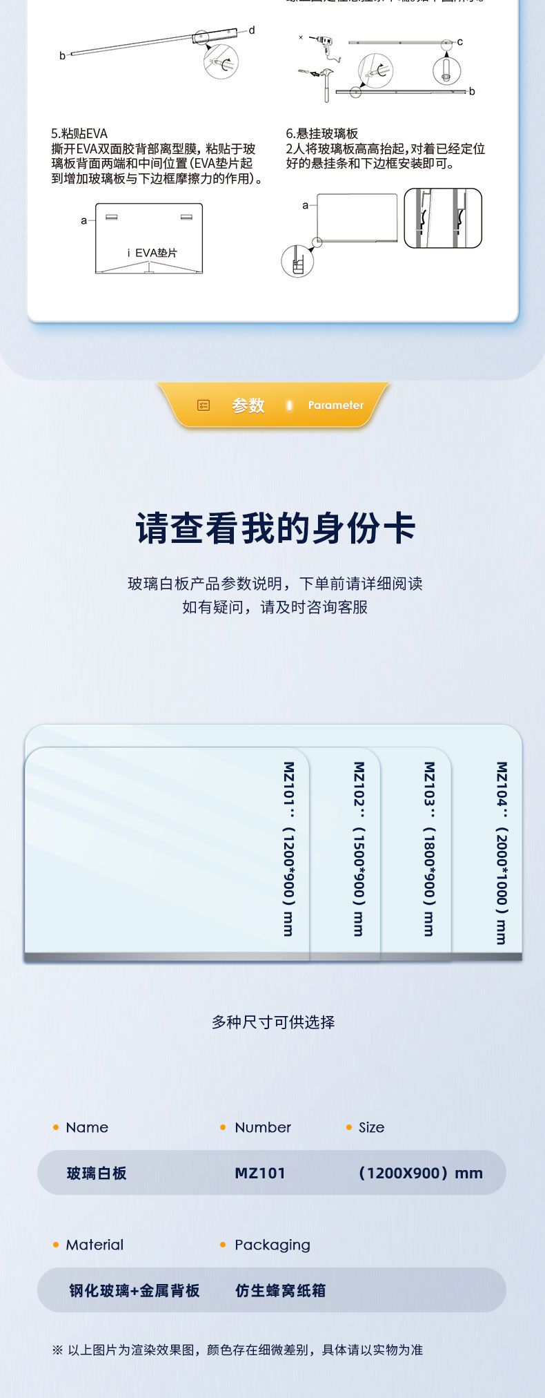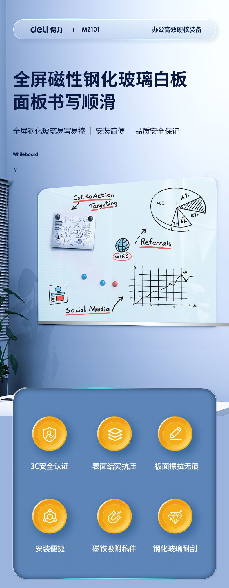 商品名称:得力 MZ101全屏玻璃白板900*1200mm(白)*1块