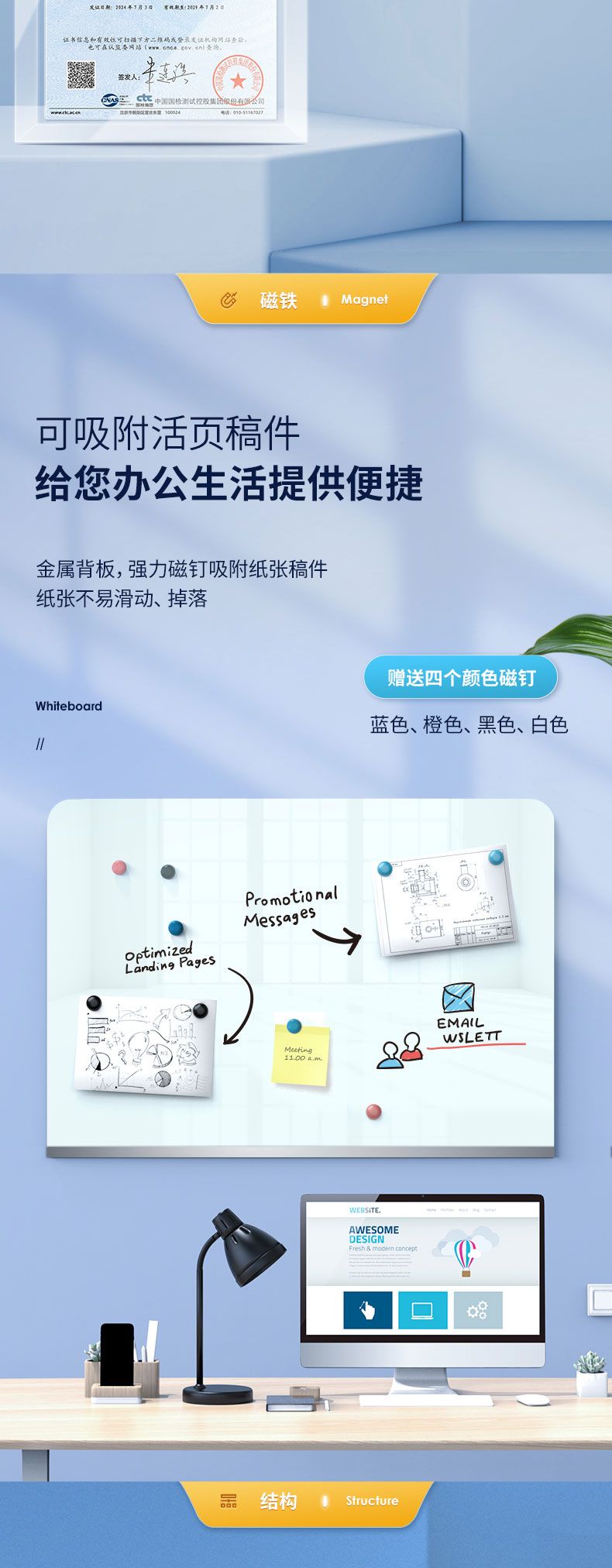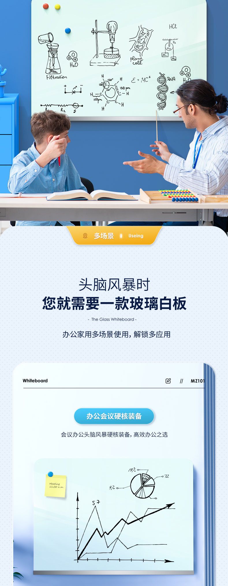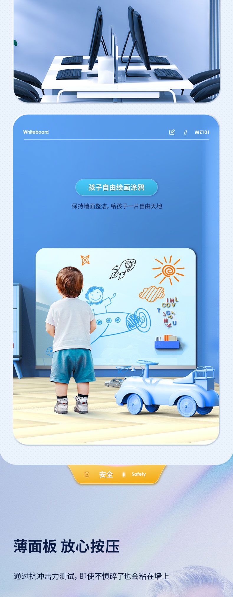 商品名称:得力 MZ101全屏玻璃白板900*1200mm(白)*1块