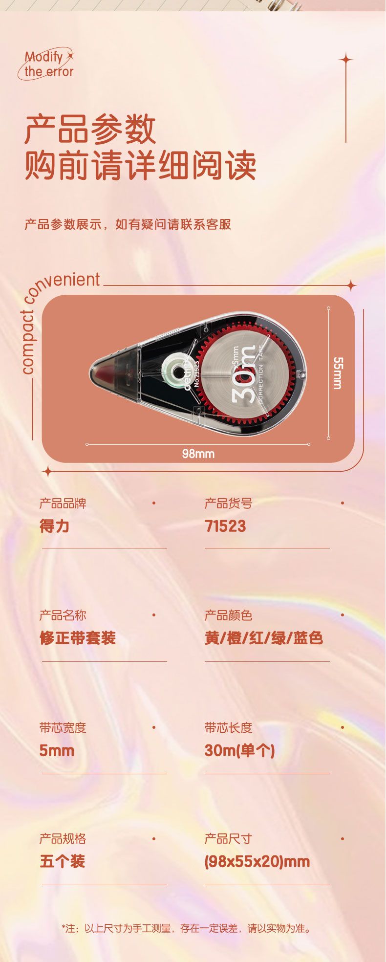 商品名称:得力 8110修正带_5mm*8m(新)(混合装)*12个