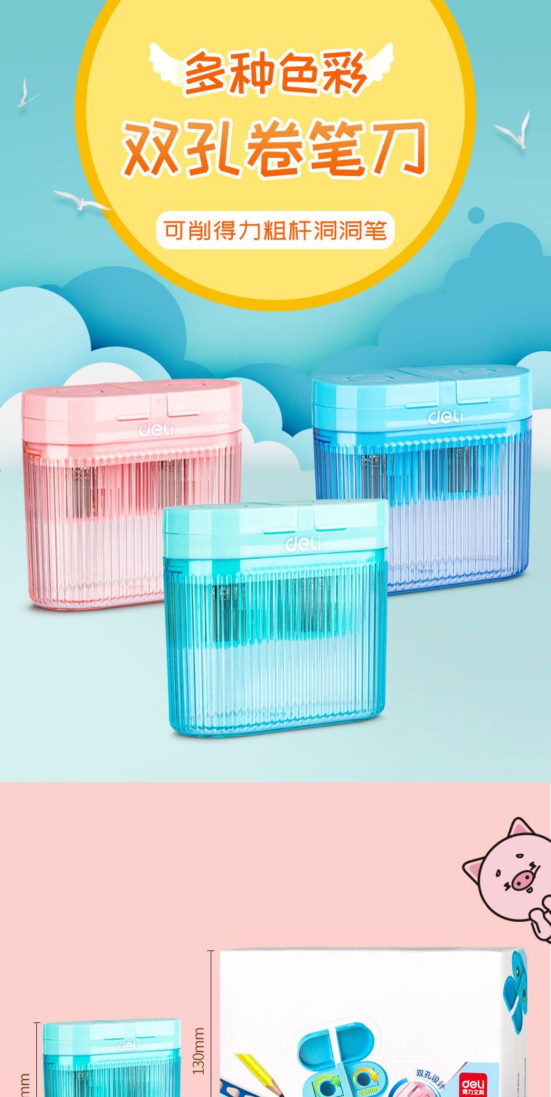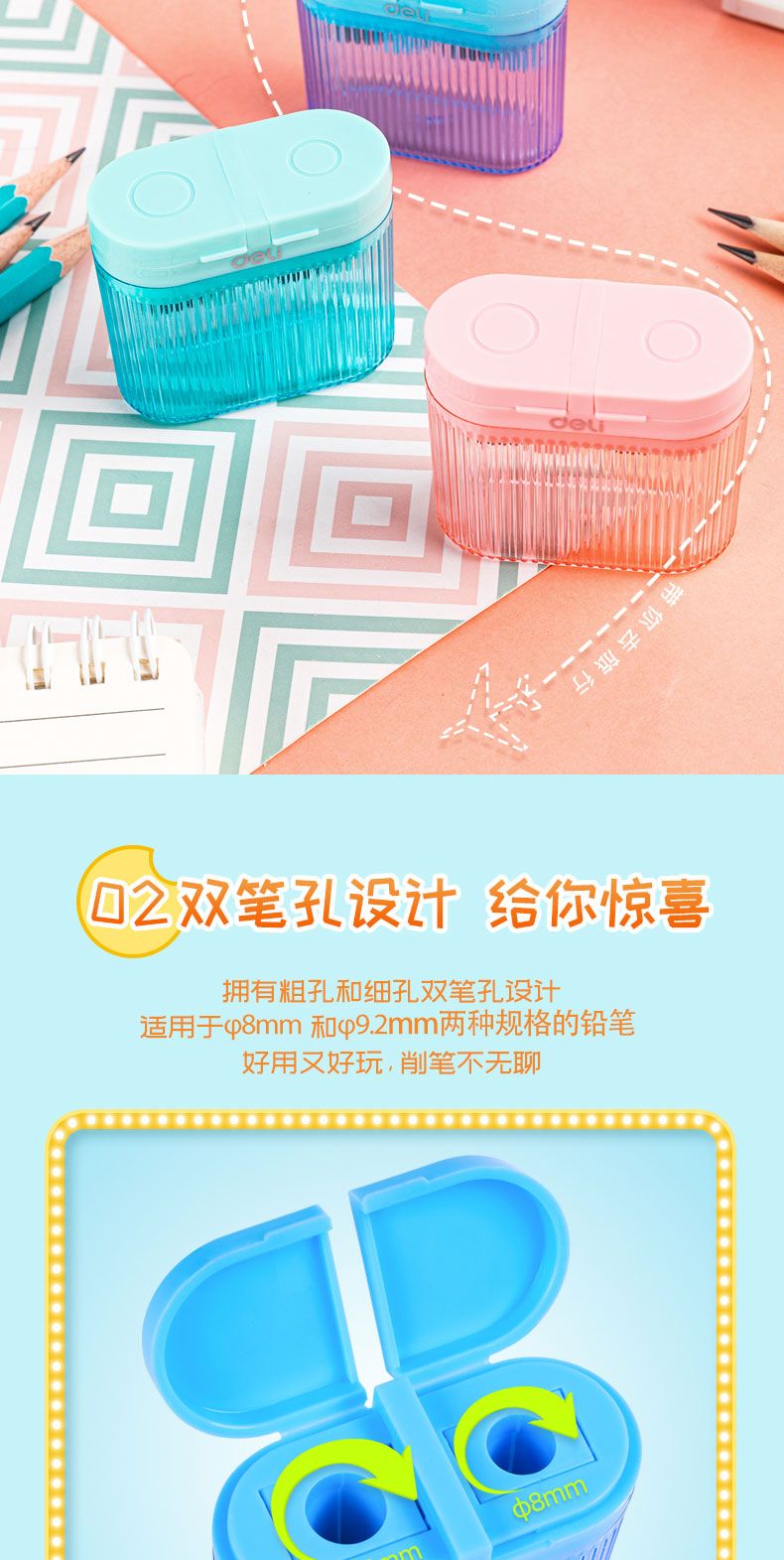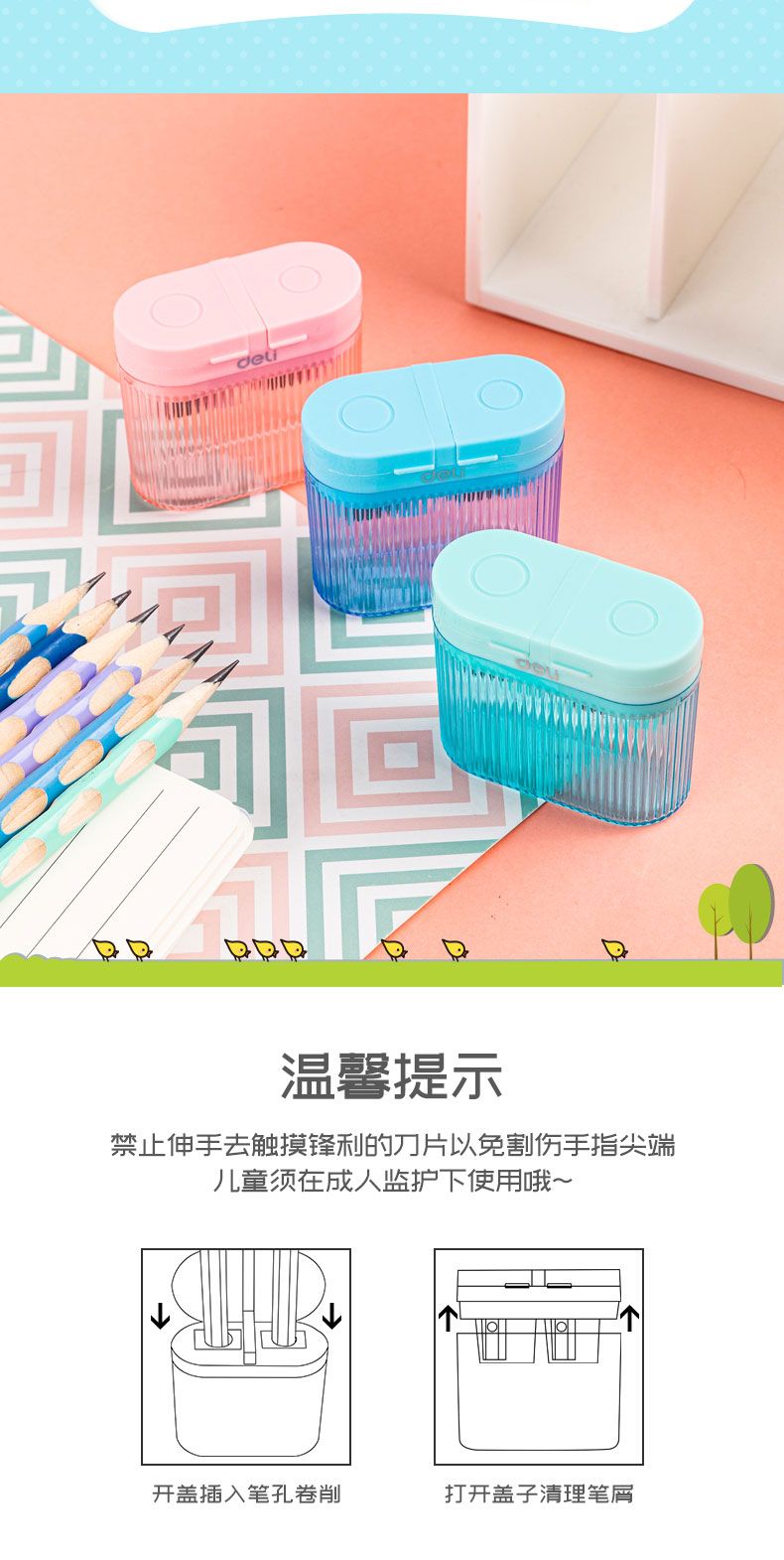 商品名称:得力 68664双孔卷笔刀(混合装)*3个