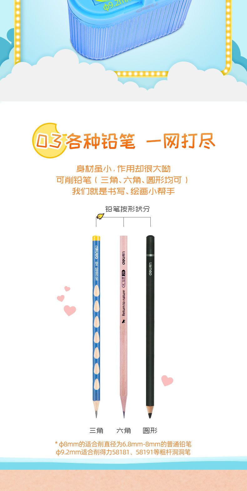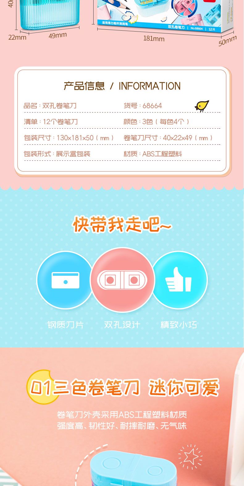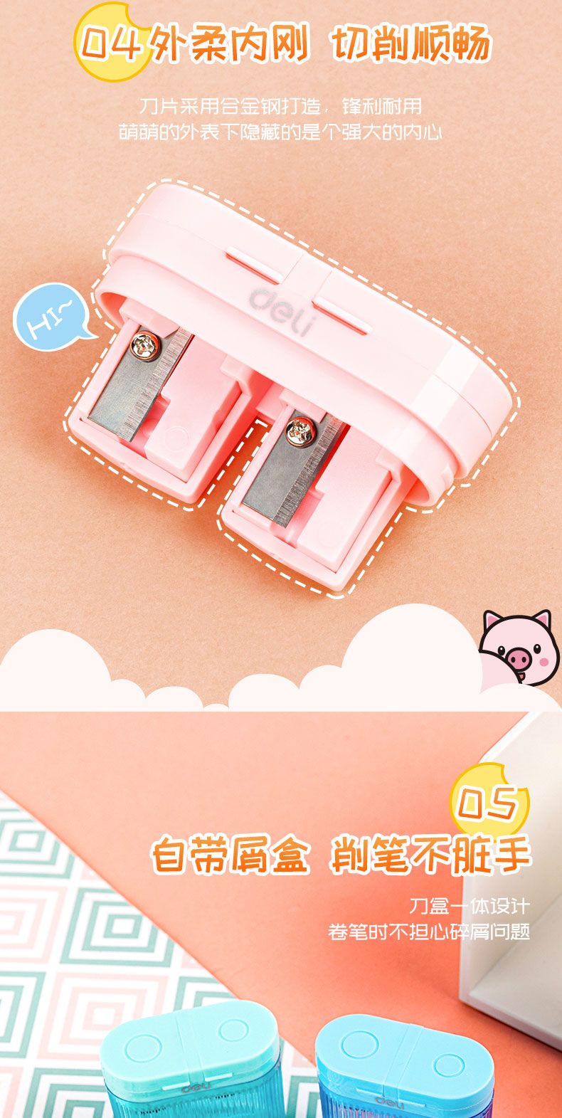 商品名称:得力 68664双孔卷笔刀(混合装)*3个