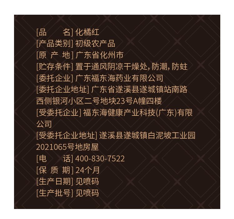商品名称:【福东海】化橘红60克/瓶