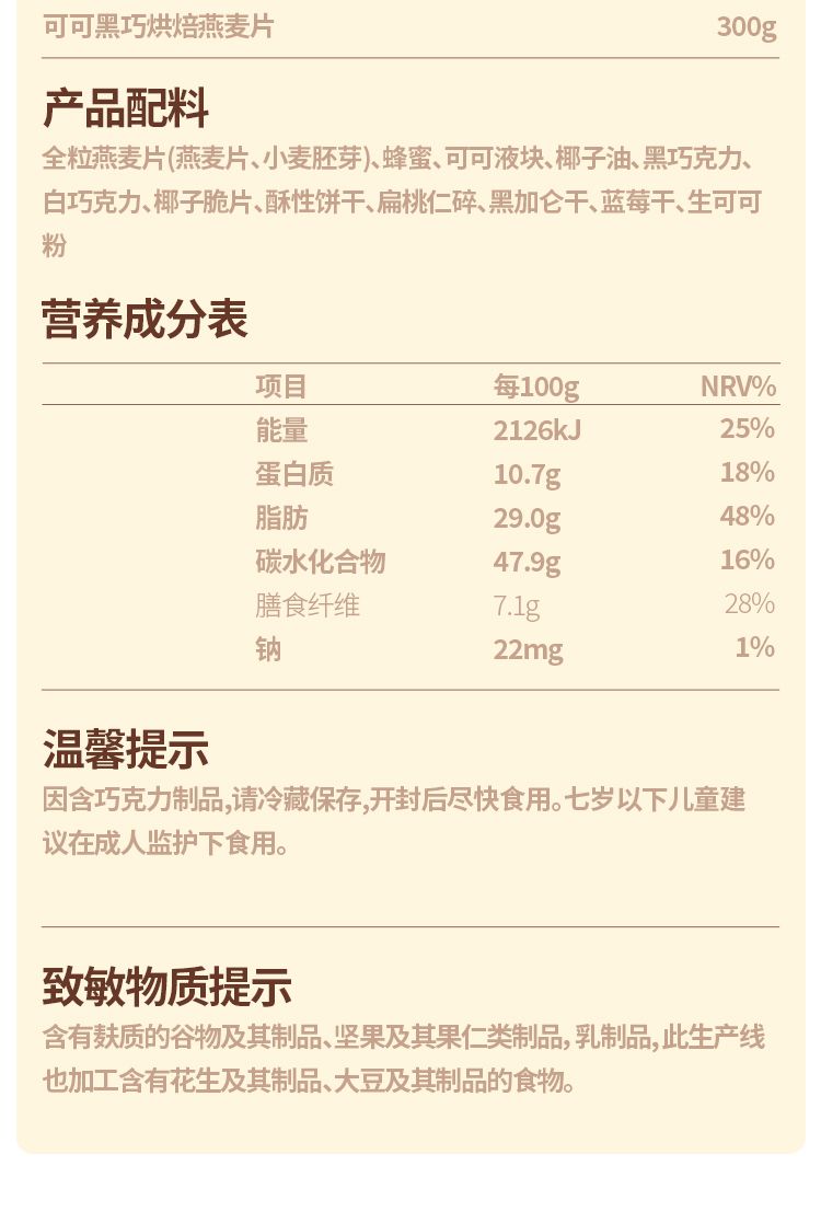 商品名称:谷之优品可可黑巧烘焙燕麦片300g/袋