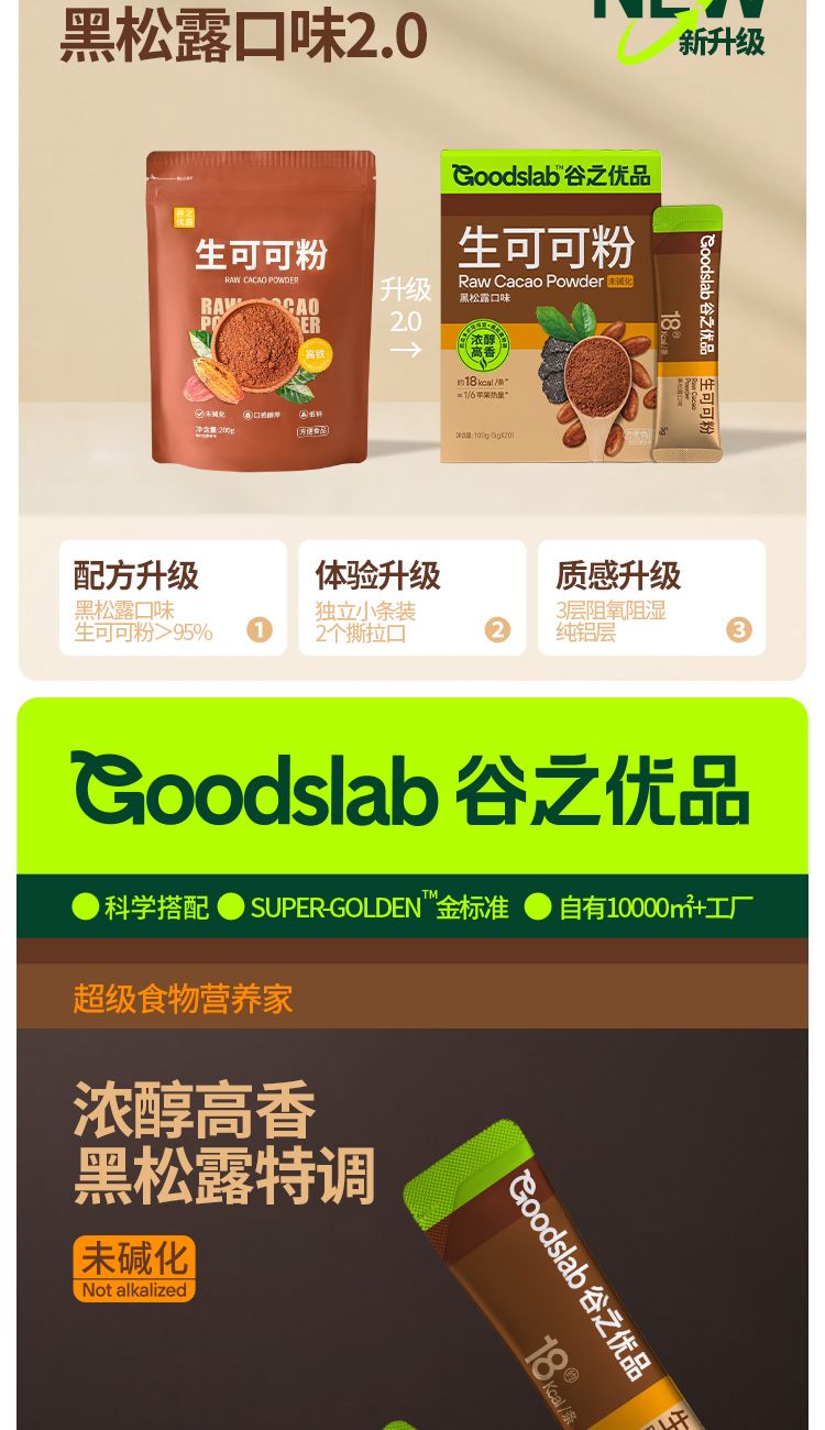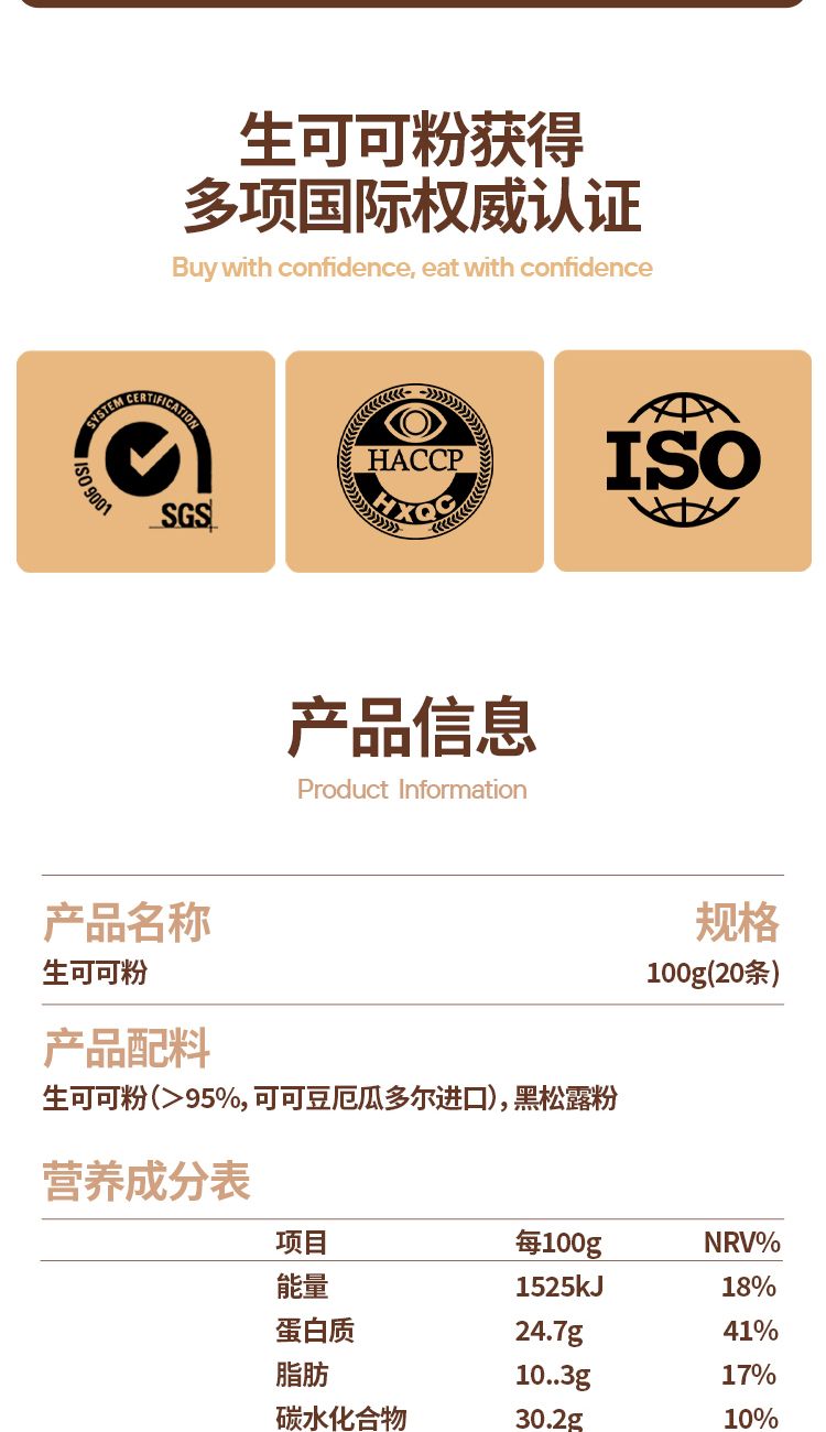 商品名称:谷之优品生可可粉黑松露口味100g(5g*20条)/盒