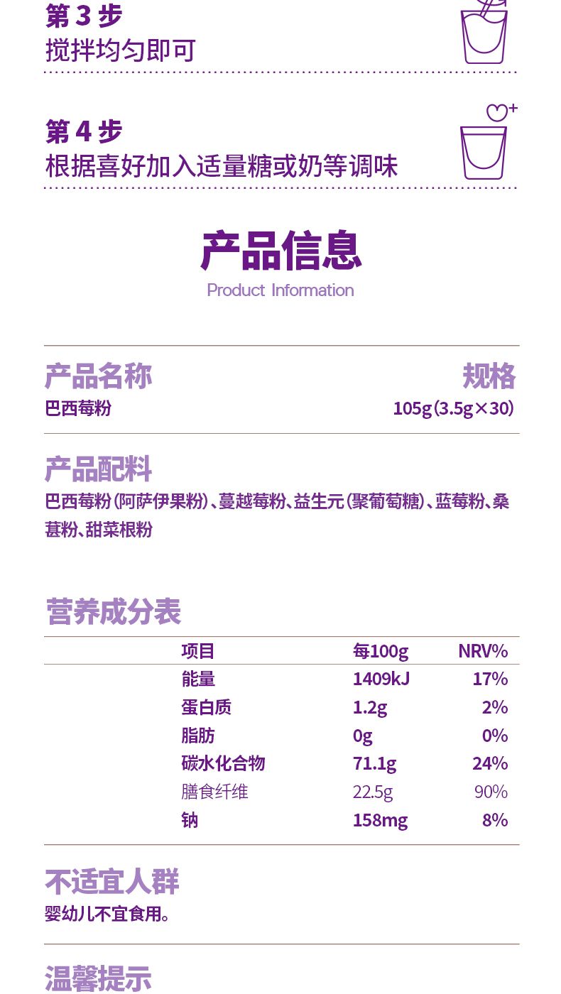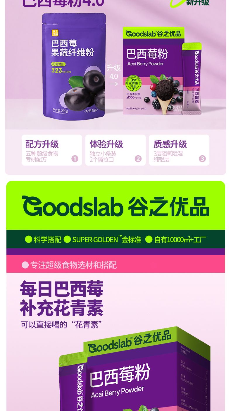 商品名称:谷之优品巴西莓粉105g (3.5g*30条)/盒