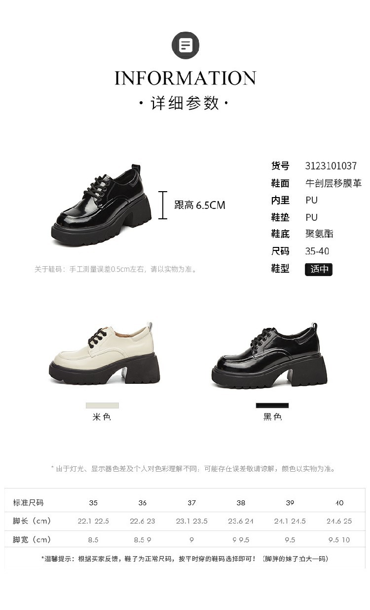 商品名称:【秒增6.5CM】春季复古厚底乐福鞋英伦风牛津鞋学院女单鞋 697242