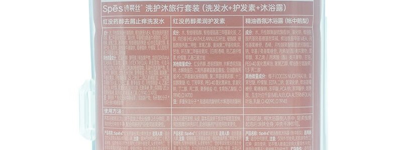 商品名称:诗裴丝(spes)洗护沐旅行套装(洗发水50ml+护发素50ml+沐浴露50ml)