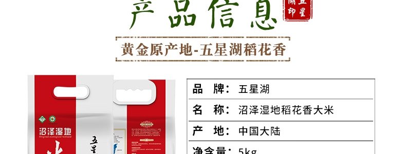 商品名称:五星湖 沼泽湿地有机稻花香 2.5kg*2袋