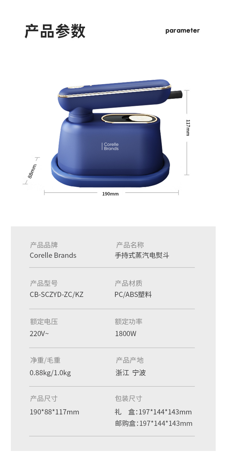 商品名称:CorelleBrands/康宁手持式蒸汽电熨斗CB-SCZYD-ZC/KZ