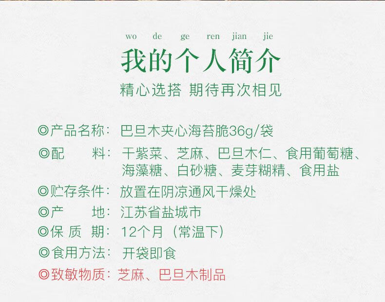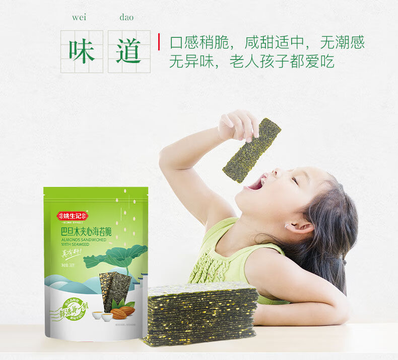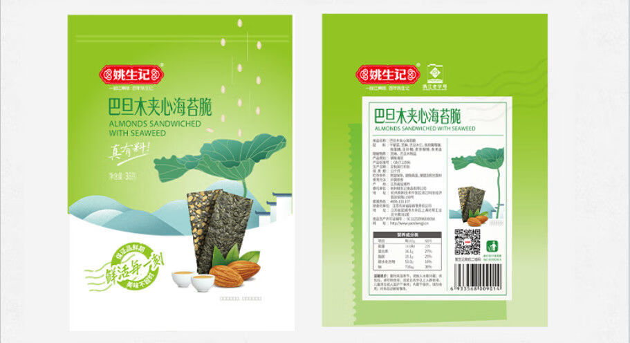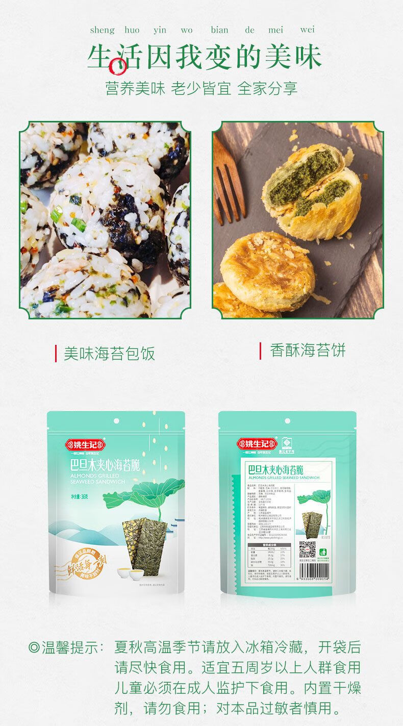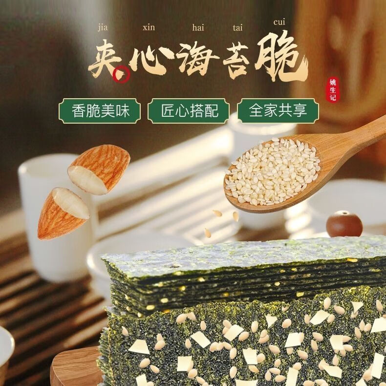 商品名称:姚生记巴旦木夹心海苔脆36g*5袋