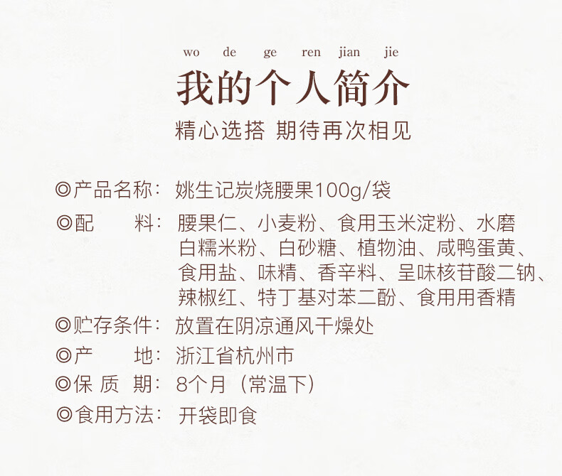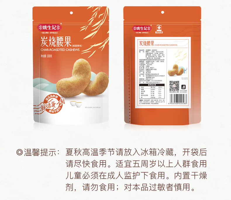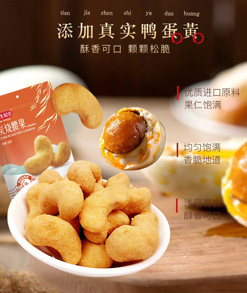 商品名称:姚生记炭烧腰果(咸蛋黄味)100g*3袋