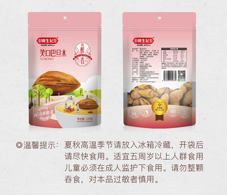 姚生记笑口巴旦木120g*3袋
