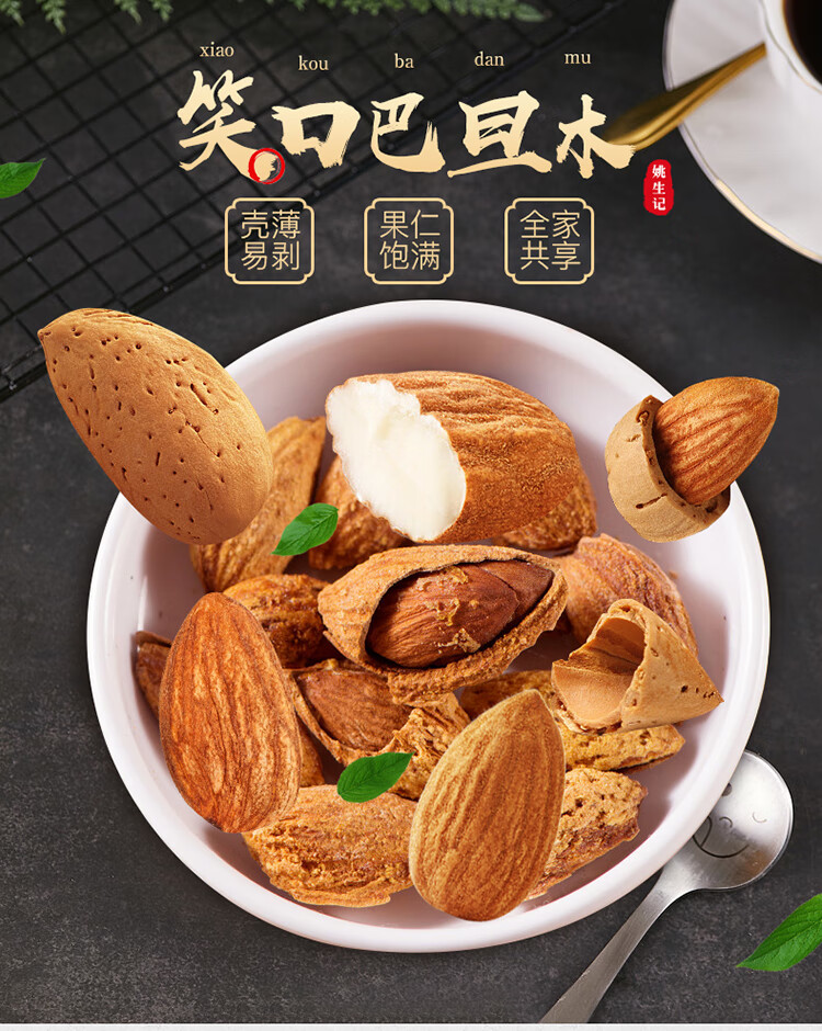 商品名称:姚生记笑口巴旦木120g*3袋