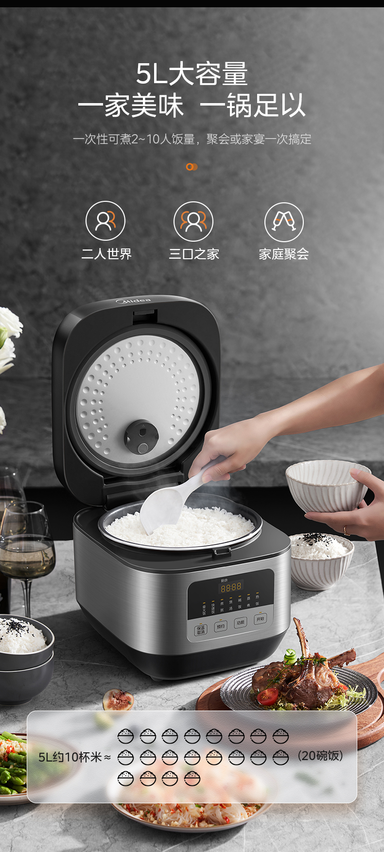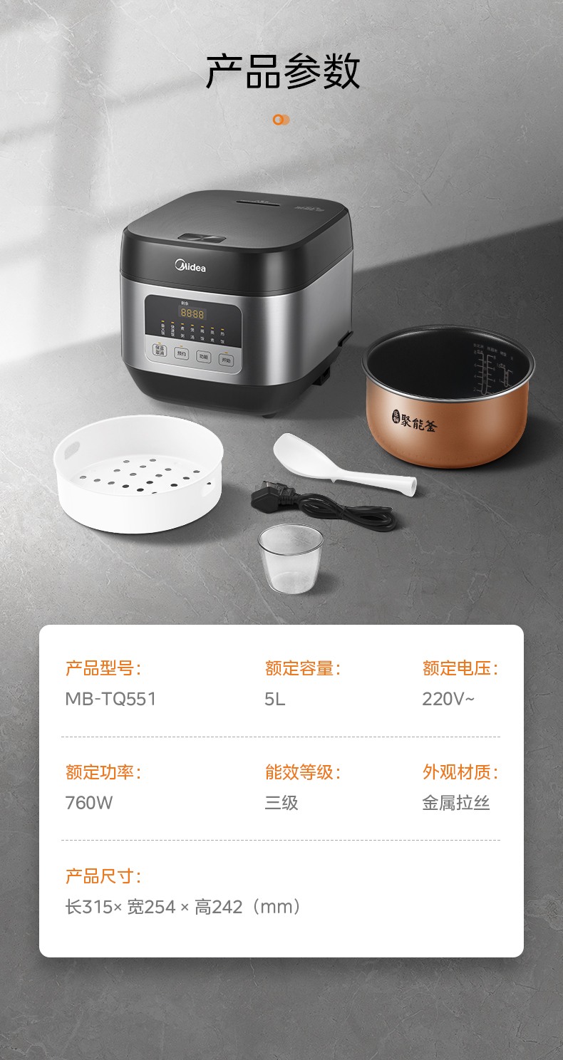 商品名称:Midea/美的5升智能电饭煲MB-TQ551