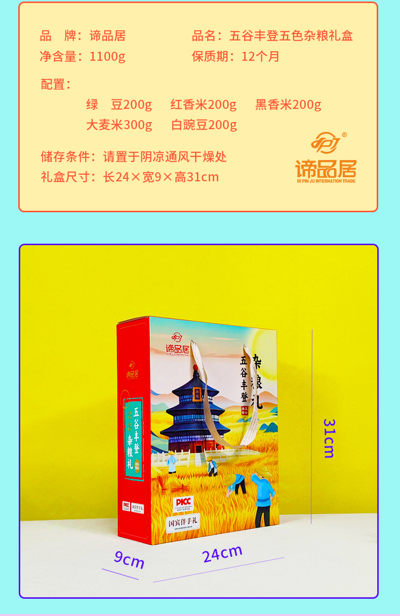 商品名称:谛品居五谷丰登五色杂粮礼盒1100g