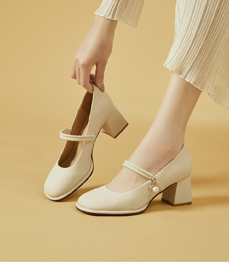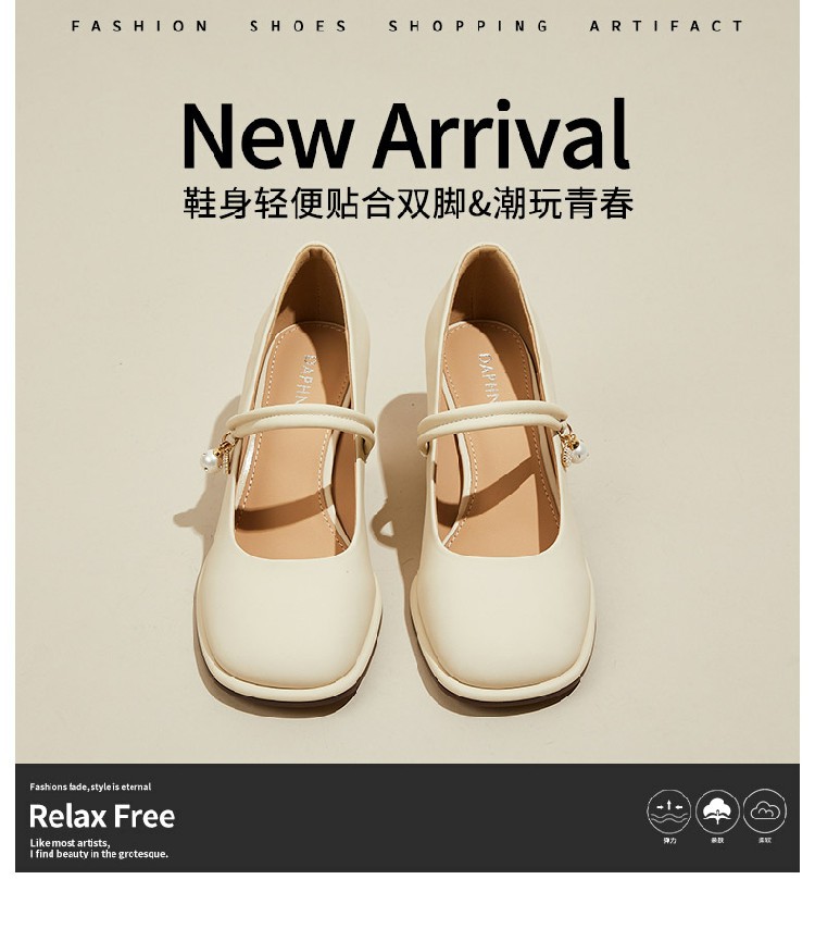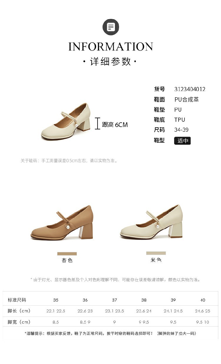 商品名称:【畅销尖货】JK制服鞋女单鞋圆头浅口玛丽珍鞋粗跟高跟百搭女鞋 407322