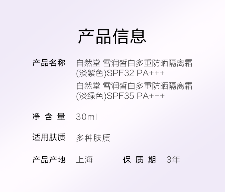 商品名称:CHANDO/自然堂雪润皙白多重防晒隔离霜30ml