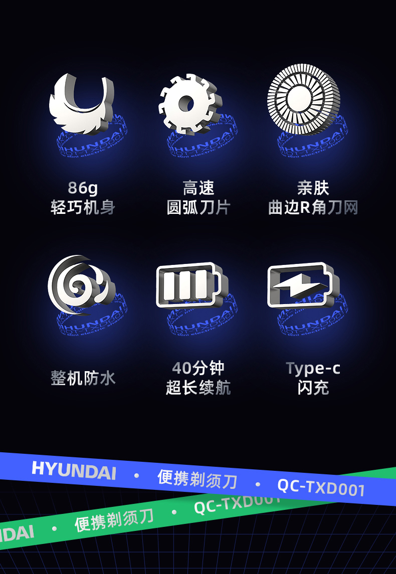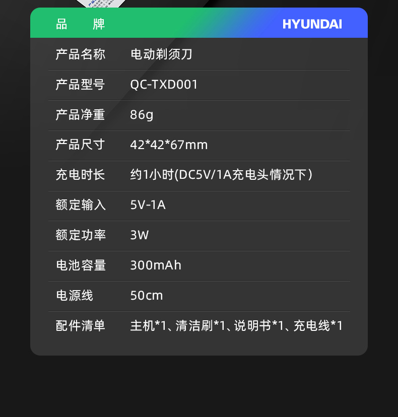 商品名称:HYUNDAI/现代电动剃须刀QC-TXD001