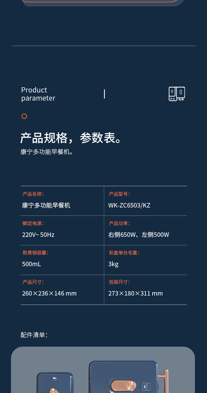 商品名称:WORLDKITCHEN/康宁多功能早餐机WK-ZC6503/KZ