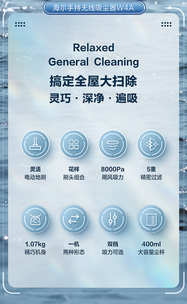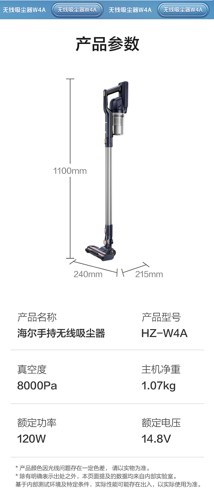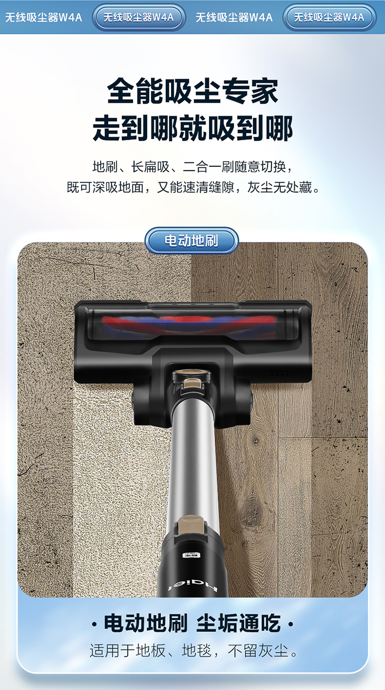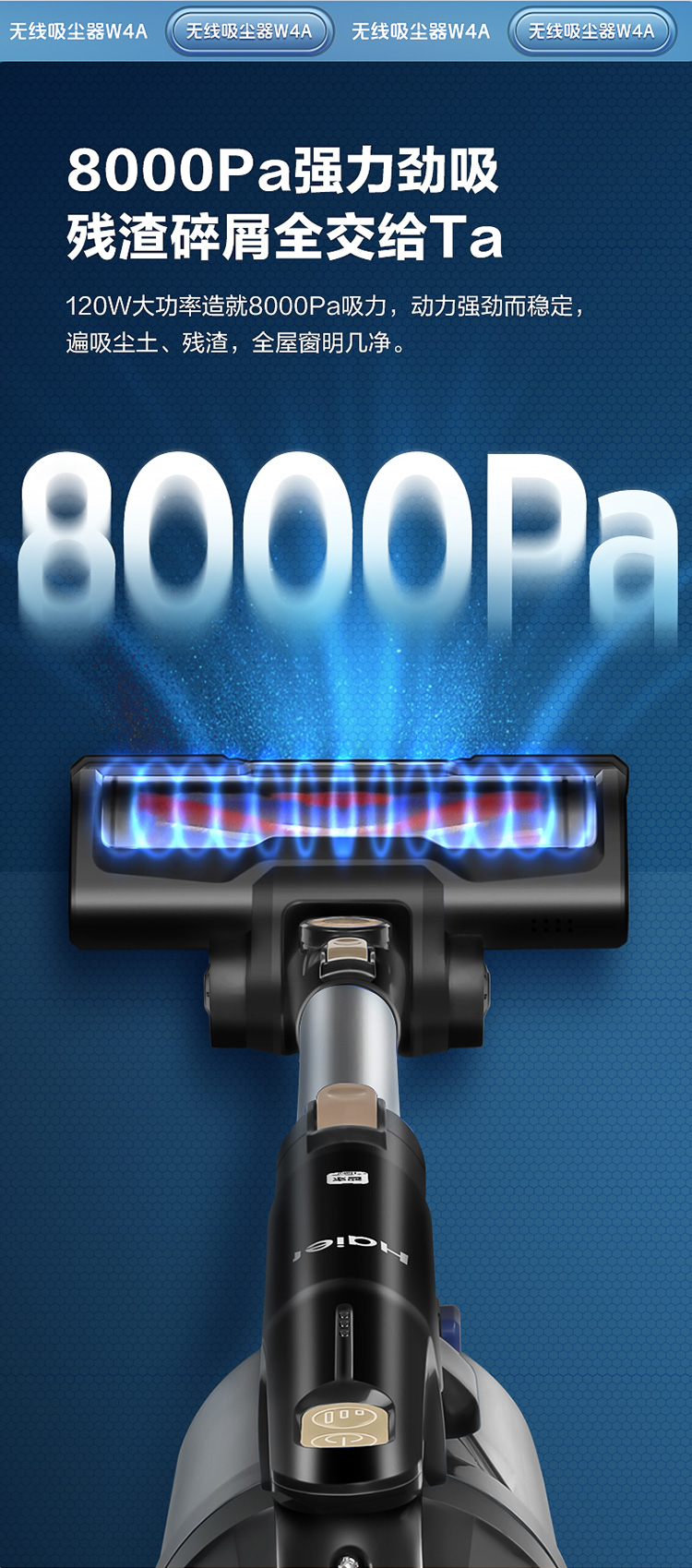 商品名称:Haier/海尔无线手持吸尘器-伯爵蓝HZ-W4A
