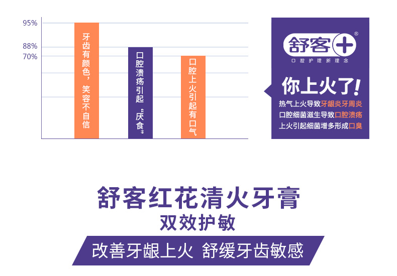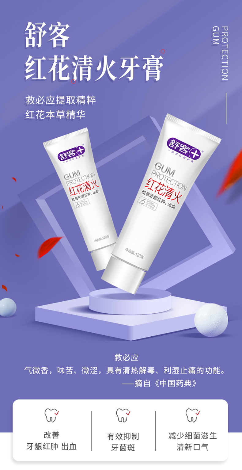 商品名称:Saky/舒客红花清火牙膏120克*2支+防蛀固齿140g+防蛀亮白120g