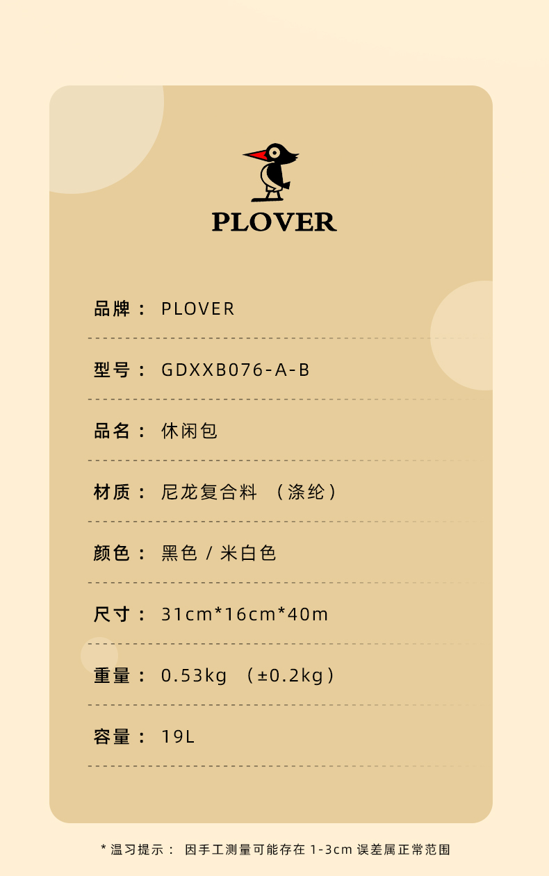 商品名称:PLOVER/啄木鸟商务休闲双肩背包