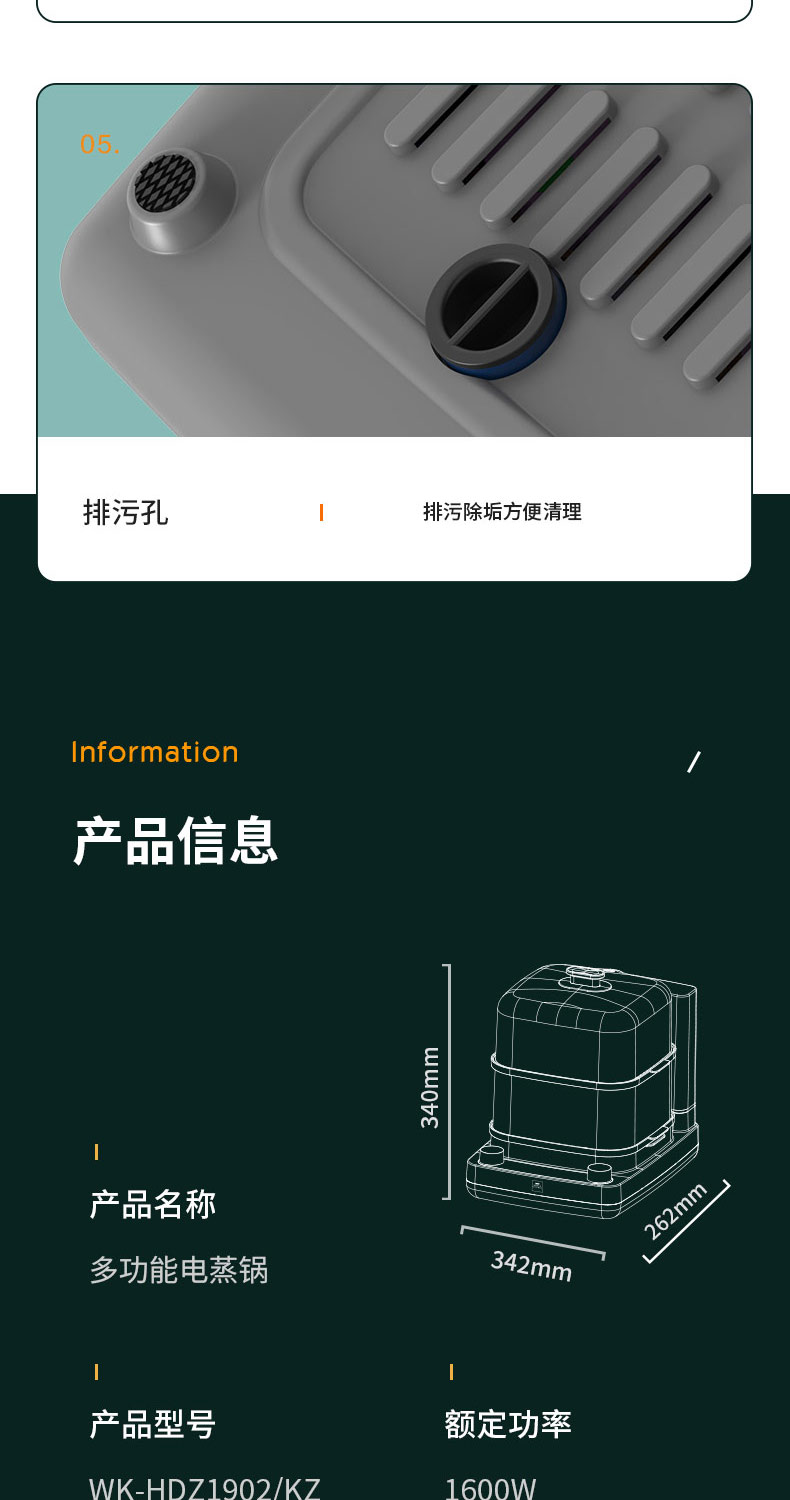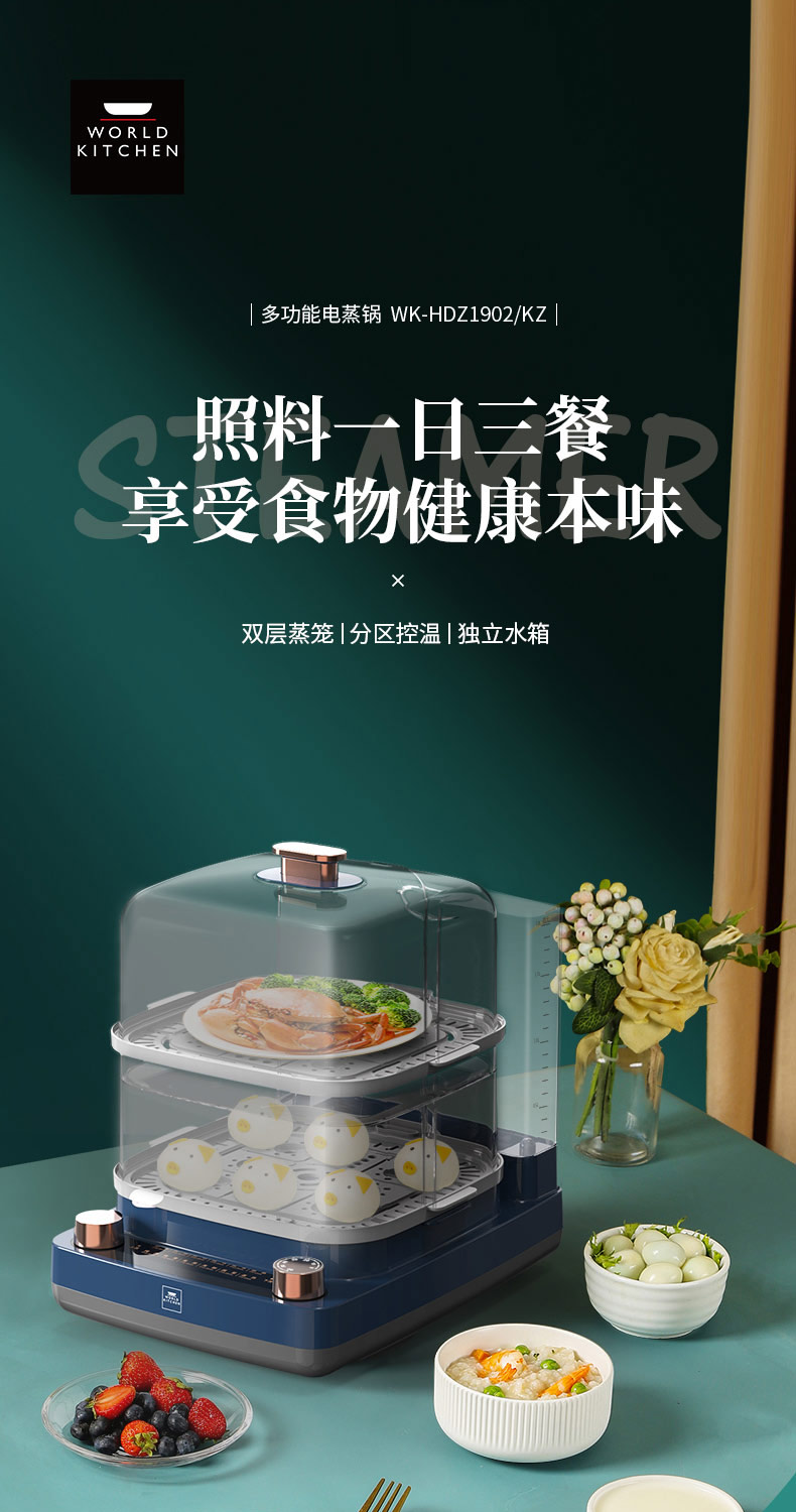 商品名称:WORLDKITCHEN/康宁4.5升多功能电蒸锅WK-HDZ1902/KZ