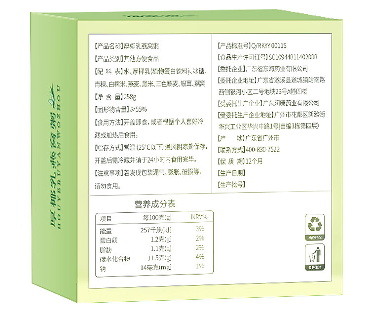 商品名称:福东海厚椰乳燕窝粥258g