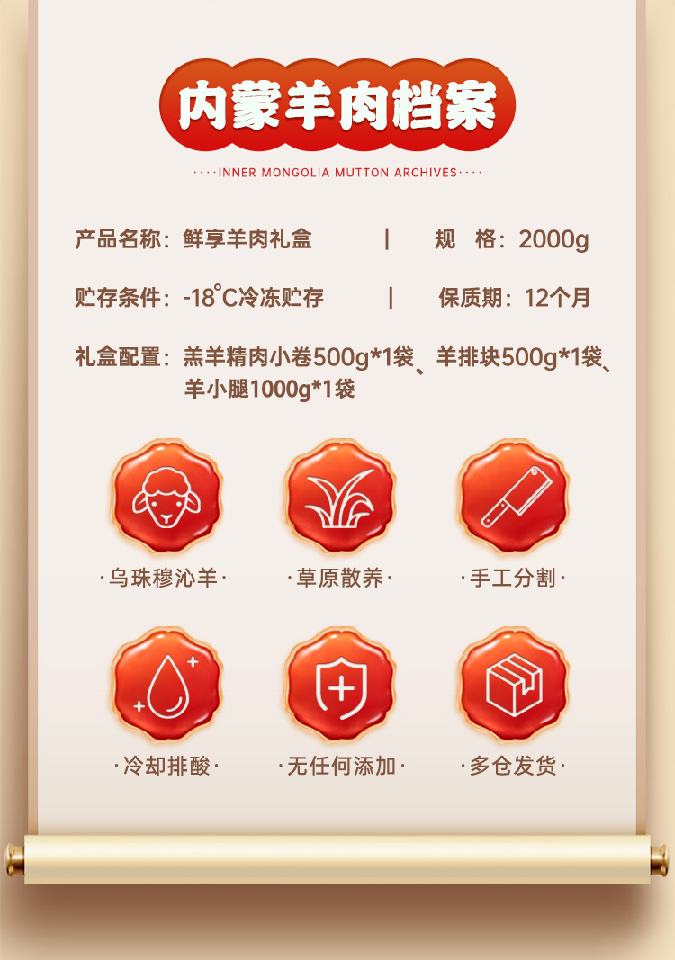 商品名称:【京东/顺丰配送】正牧蒙肉联鲜享羊肉礼盒2kg