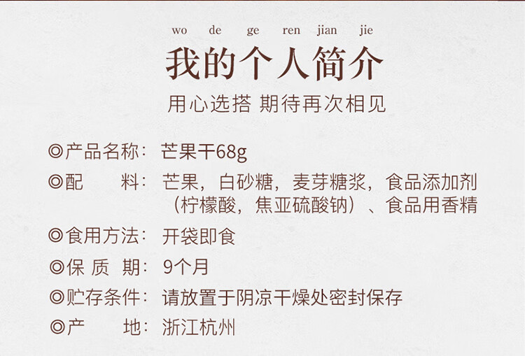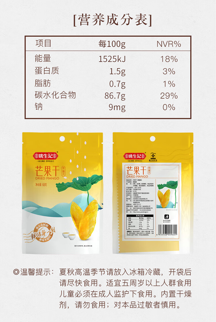 商品名称:姚生记芒果干68g*5袋