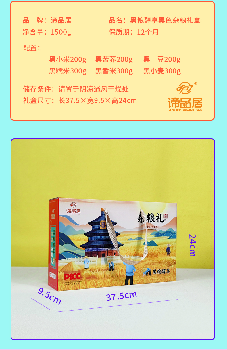 商品名称:谛品居黑粮醇享黑色杂粮礼盒1500g