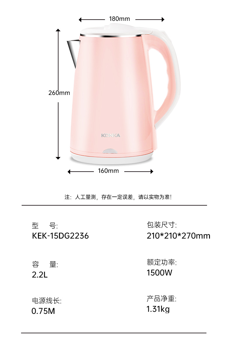 商品名称:KONKA/康佳2.2升电水壶KEK-15DG2236(A)