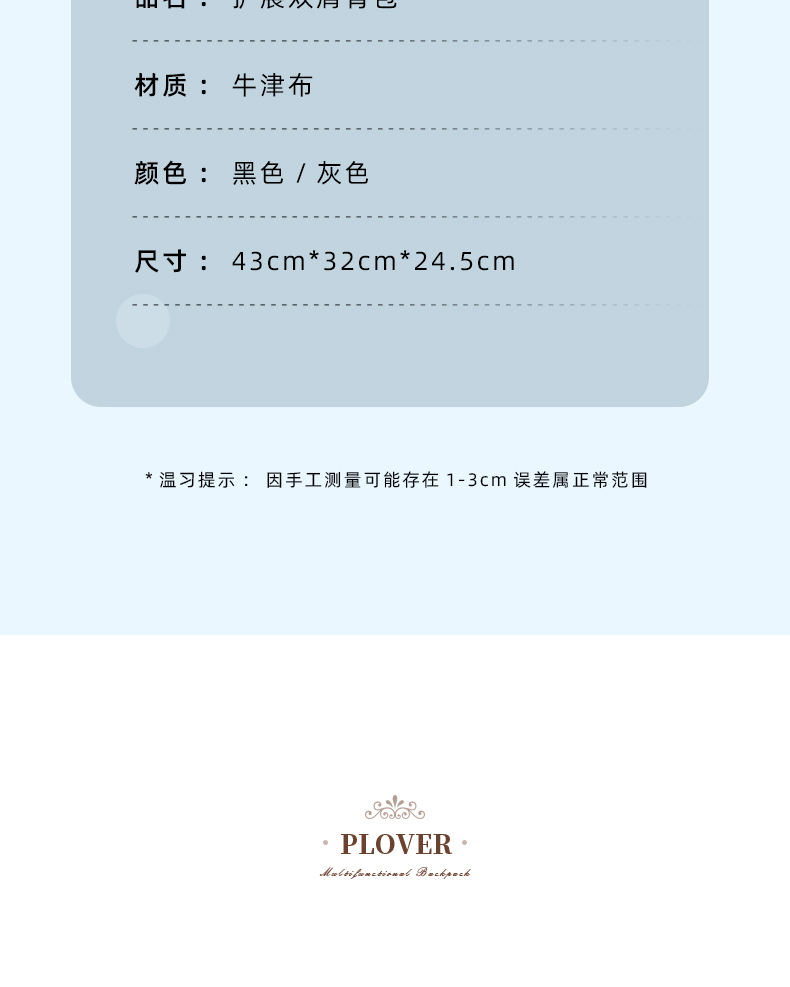 商品名称:PLOVER/啄木鸟扩展双肩背包