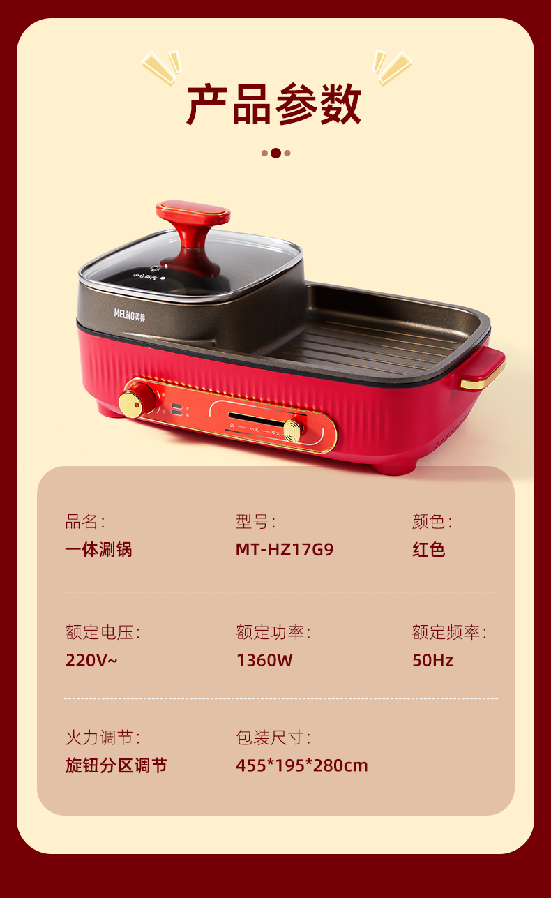 商品名称:MELING/美菱一体涮烤锅MT-HZ17G9