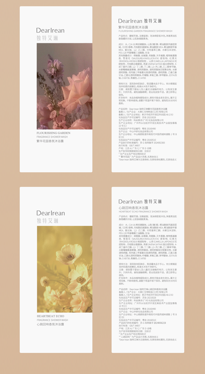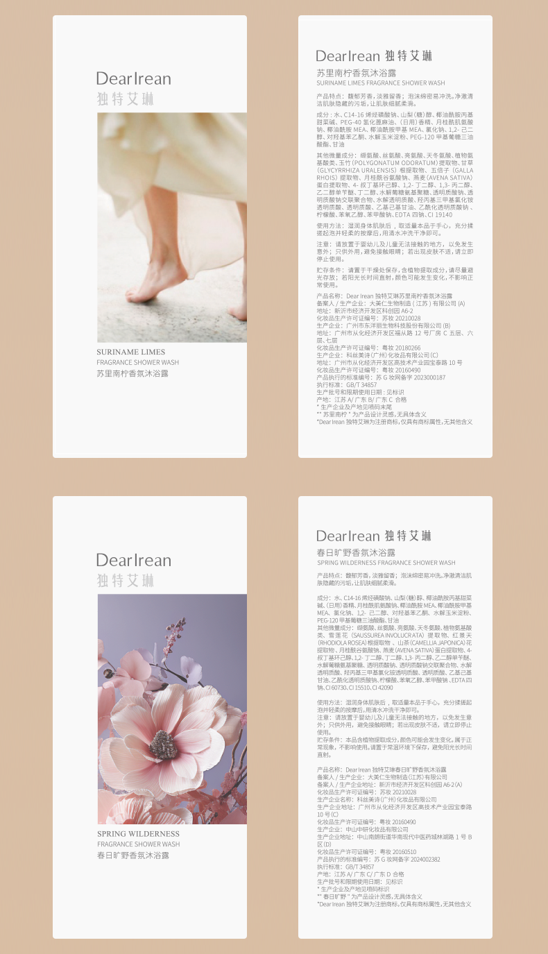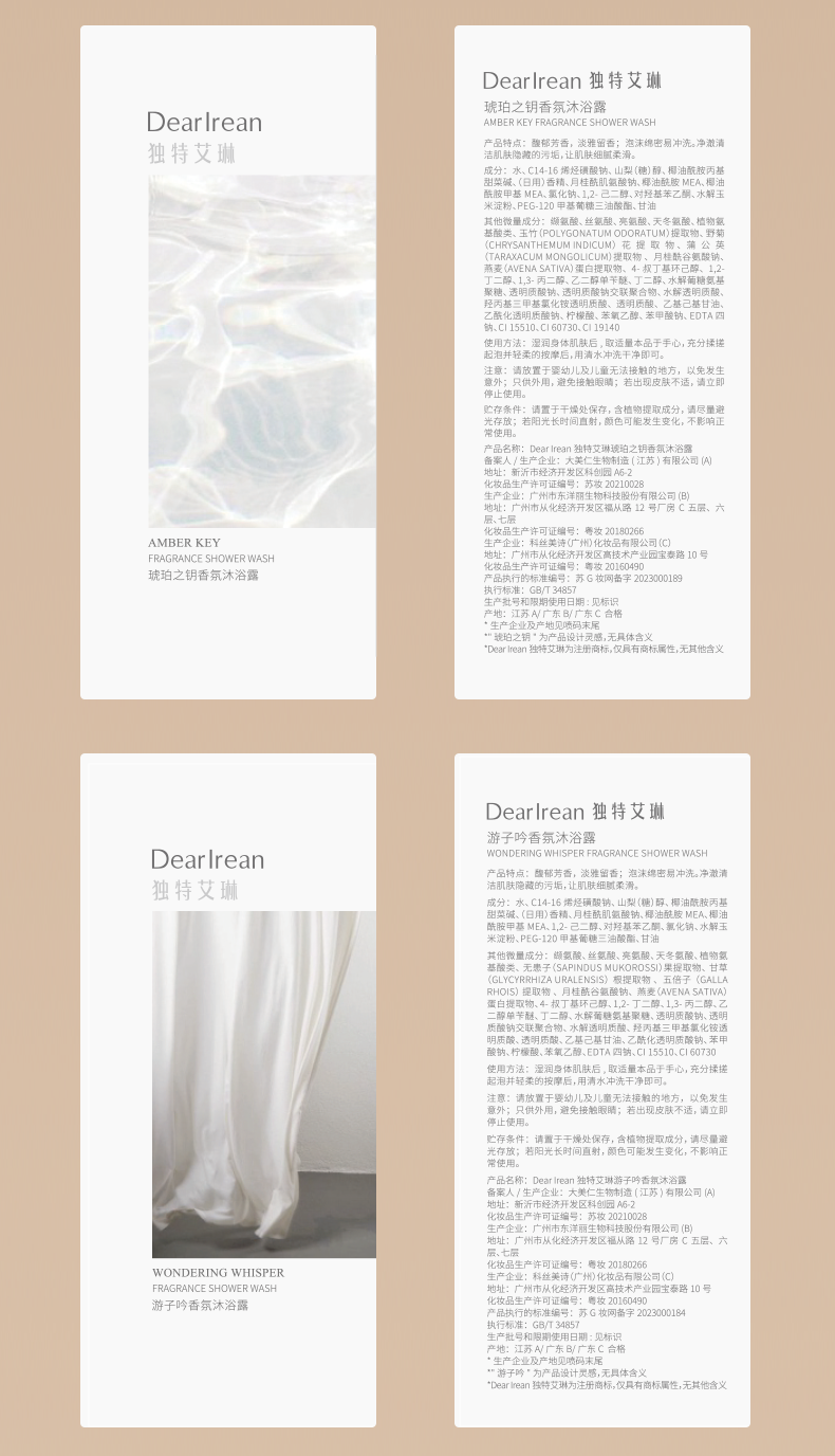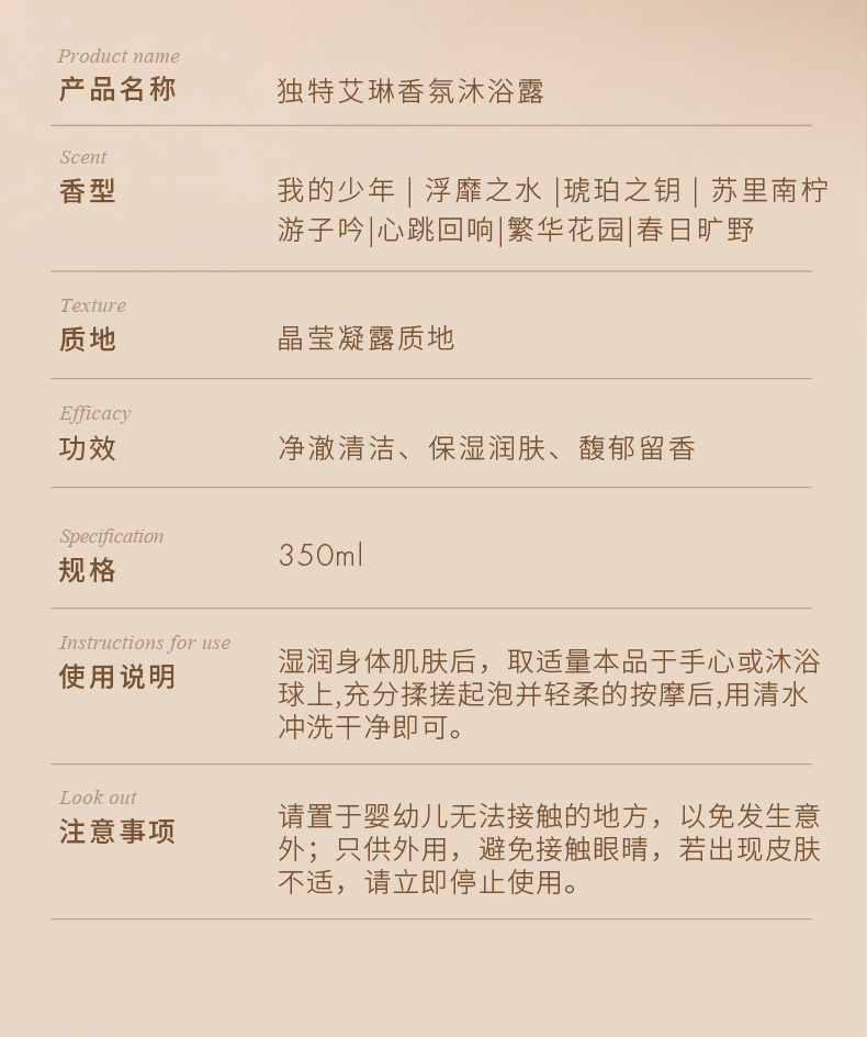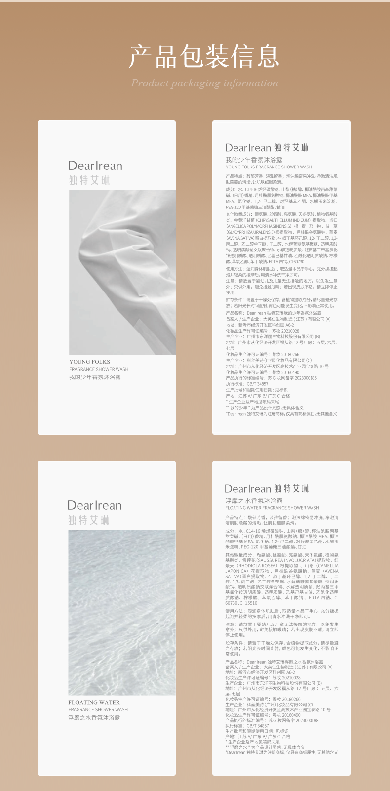 商品名称:Dear lrean/独特艾琳香氛沐浴露 新旧包装随机不接受指定