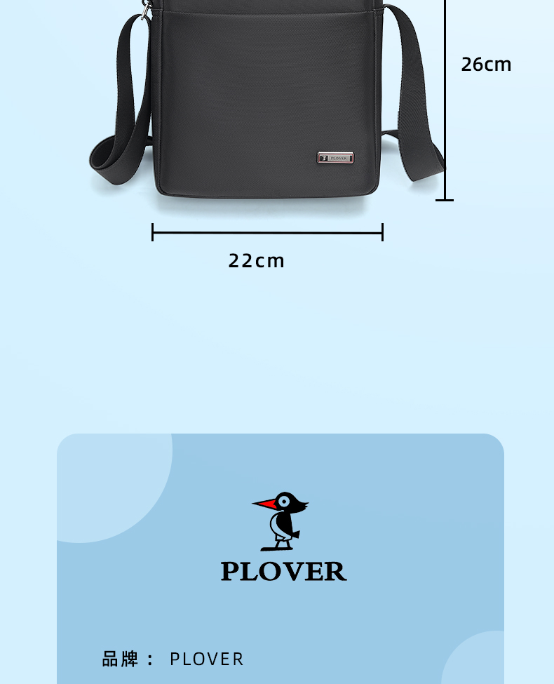 商品名称:PLOVER/啄木鸟多功能斜挎包-黑色GDXXB069-A
