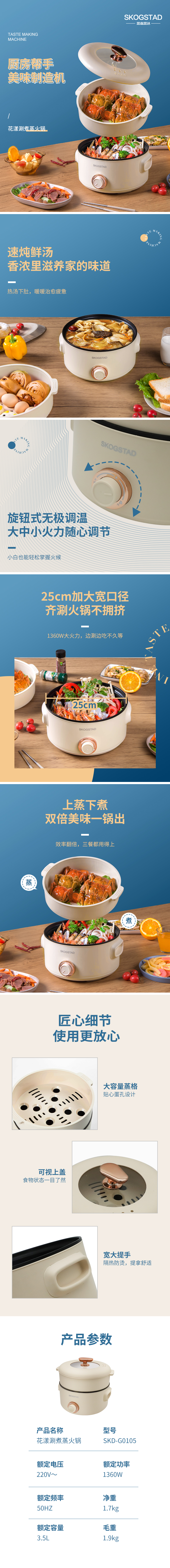 商品名称:SKOGSTAD/思嘉思达3.5升花漾涮煮蒸火锅SKD-G0105